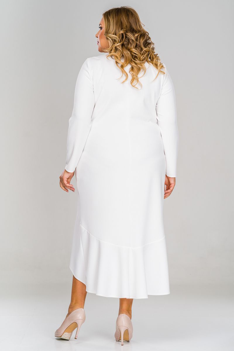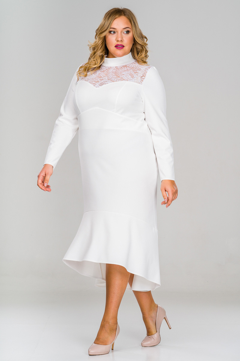 Платье с асимметричным низом и кокеткой из кружева, белое