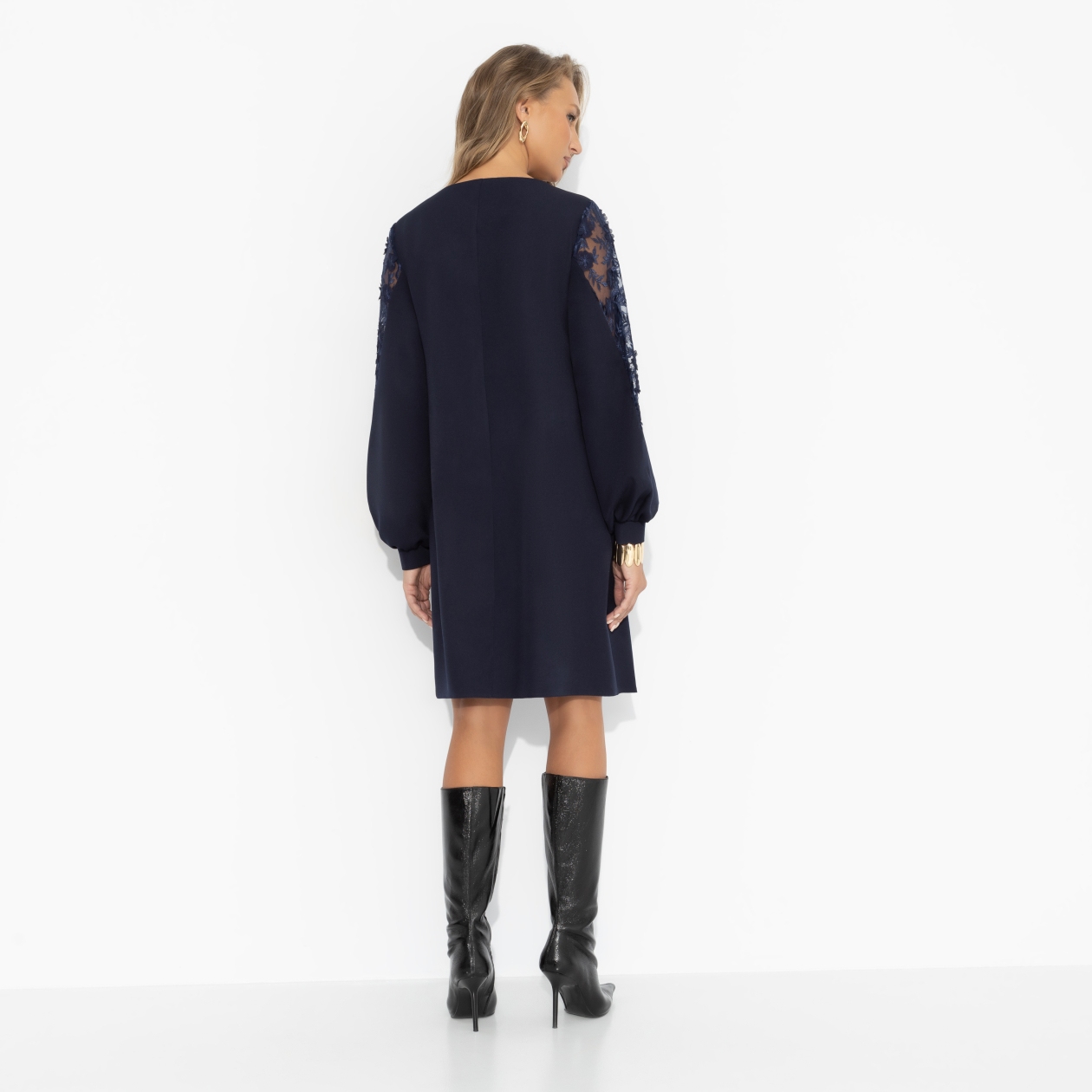 Кружево на рукавах – как лёгкое прикосновение, напоминание о чём-то важном. В этом платье хочется влюбляться – глубоко, навсегда. Платье свободной посадки, идеально подойдет на любой тип фигуры.