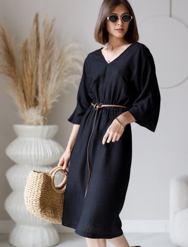 Платье с цельнокроеным рукавом изо льна с вискозой D22.219 черный
