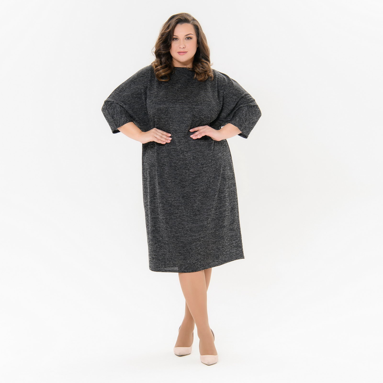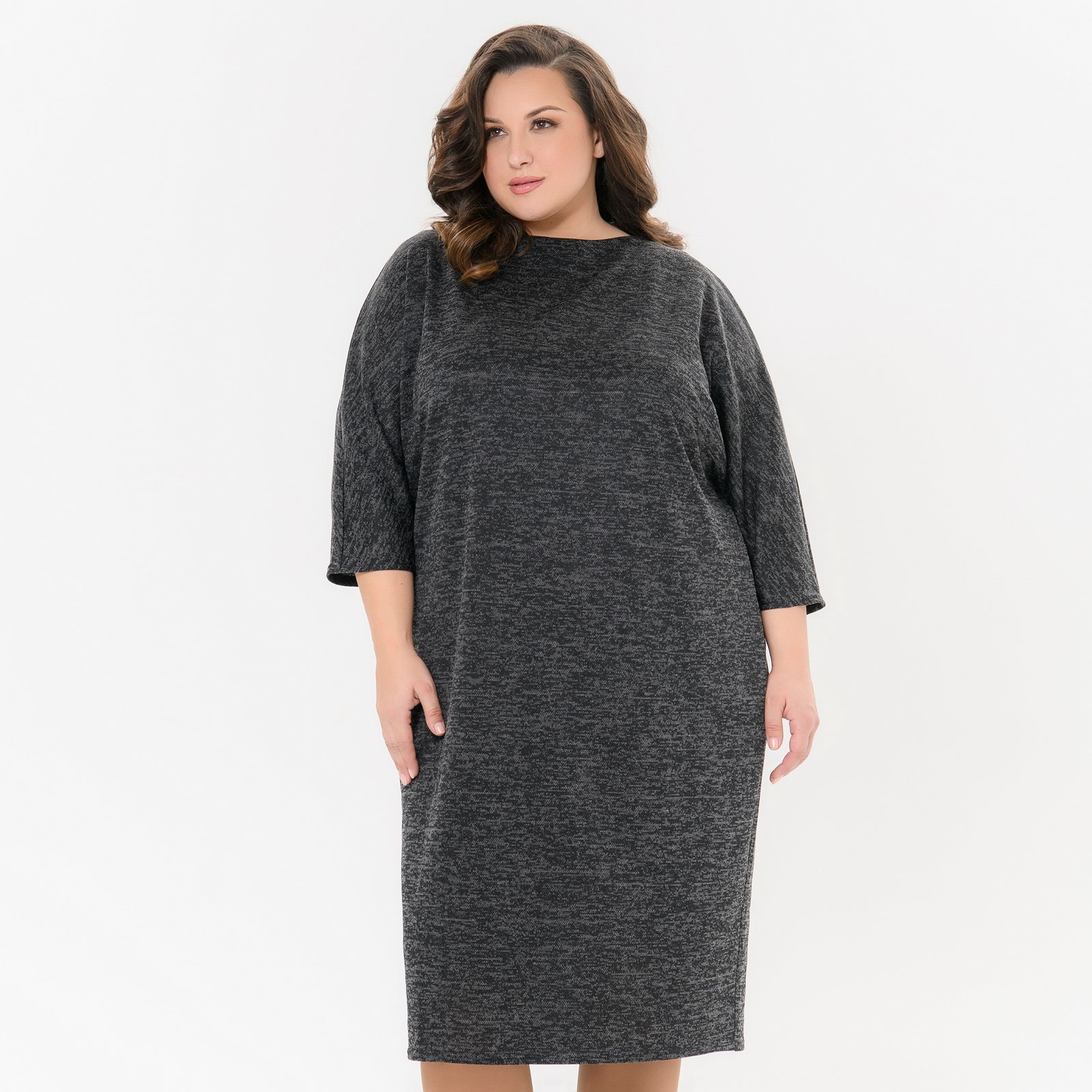 Платье с цельнокроеным рукавом, меланж темно-серый