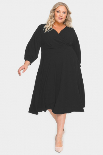 Изысканное платье прилегающего силуэта  Верхняя часть переда отрезная  с романтичной драпировкой. Двойной втачной пояс поддерживает талию. Нижняя часть расклешенная. Линия плеча занижена. Рукав "фонарик" спущенный, объемный, заканчивается манжетом. Элегантность этой модели придает утонченное сочетание драпировки и безупречность кроя.