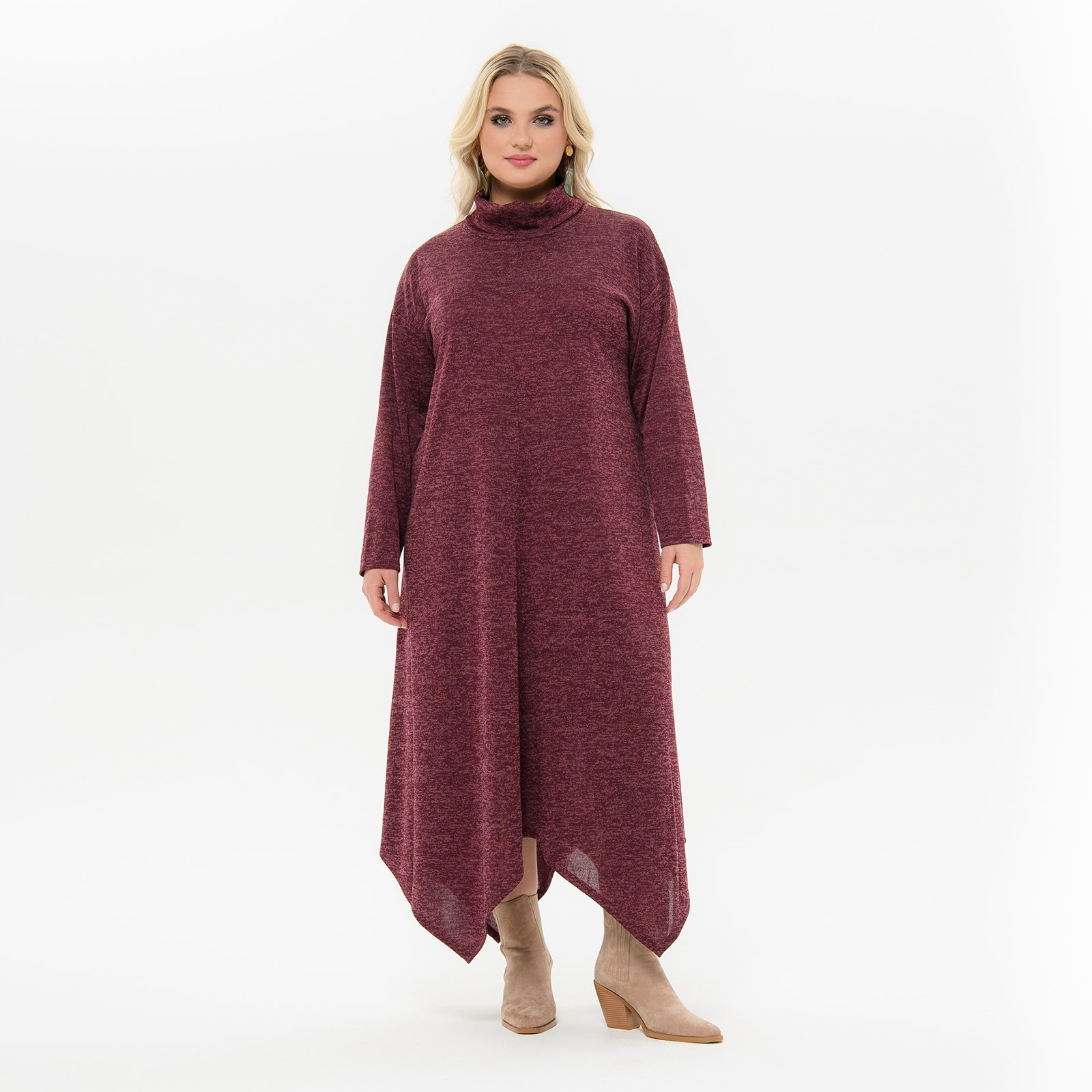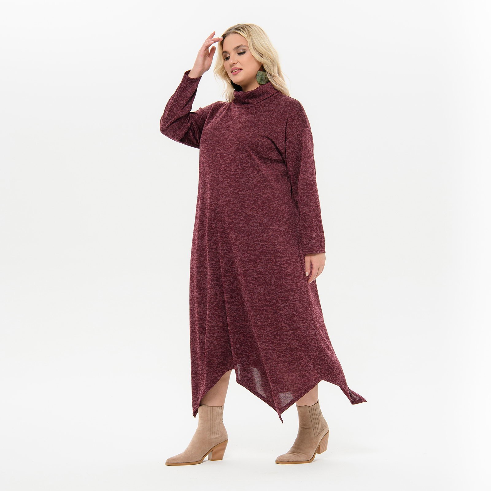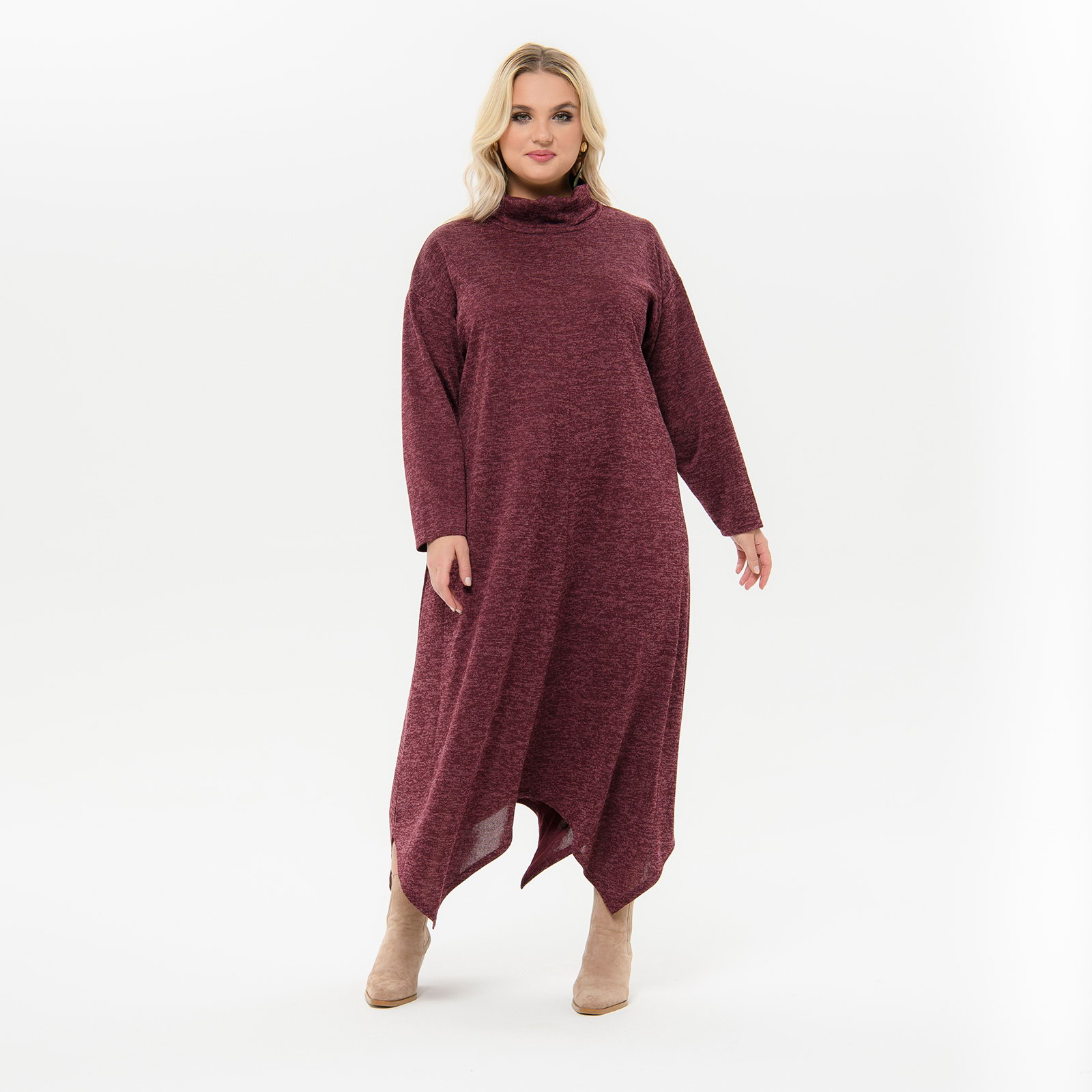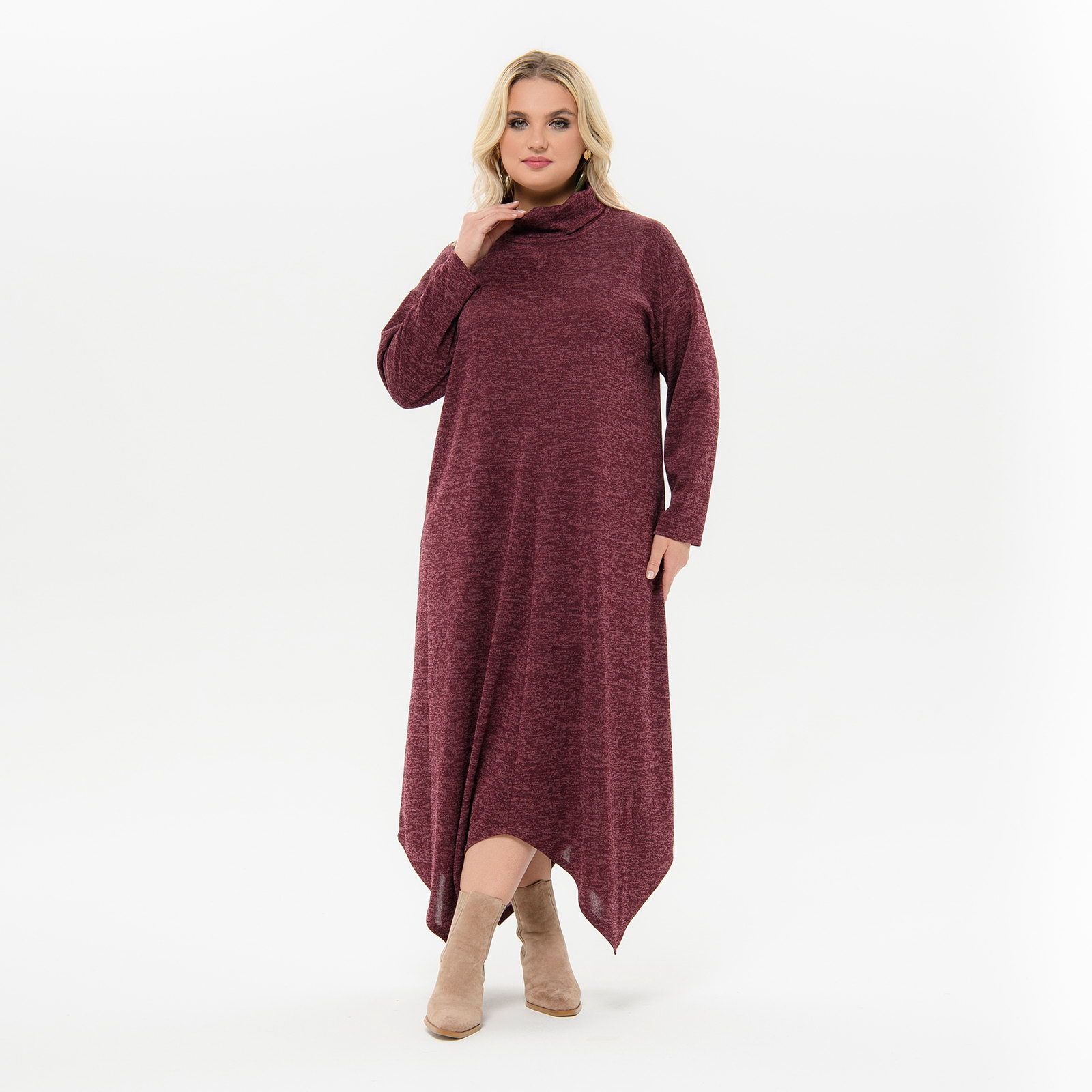 Платье с фигурной линией низа, из джерси-меланжа, бордовое