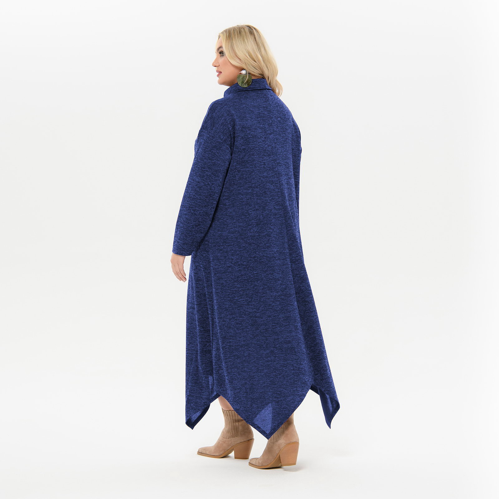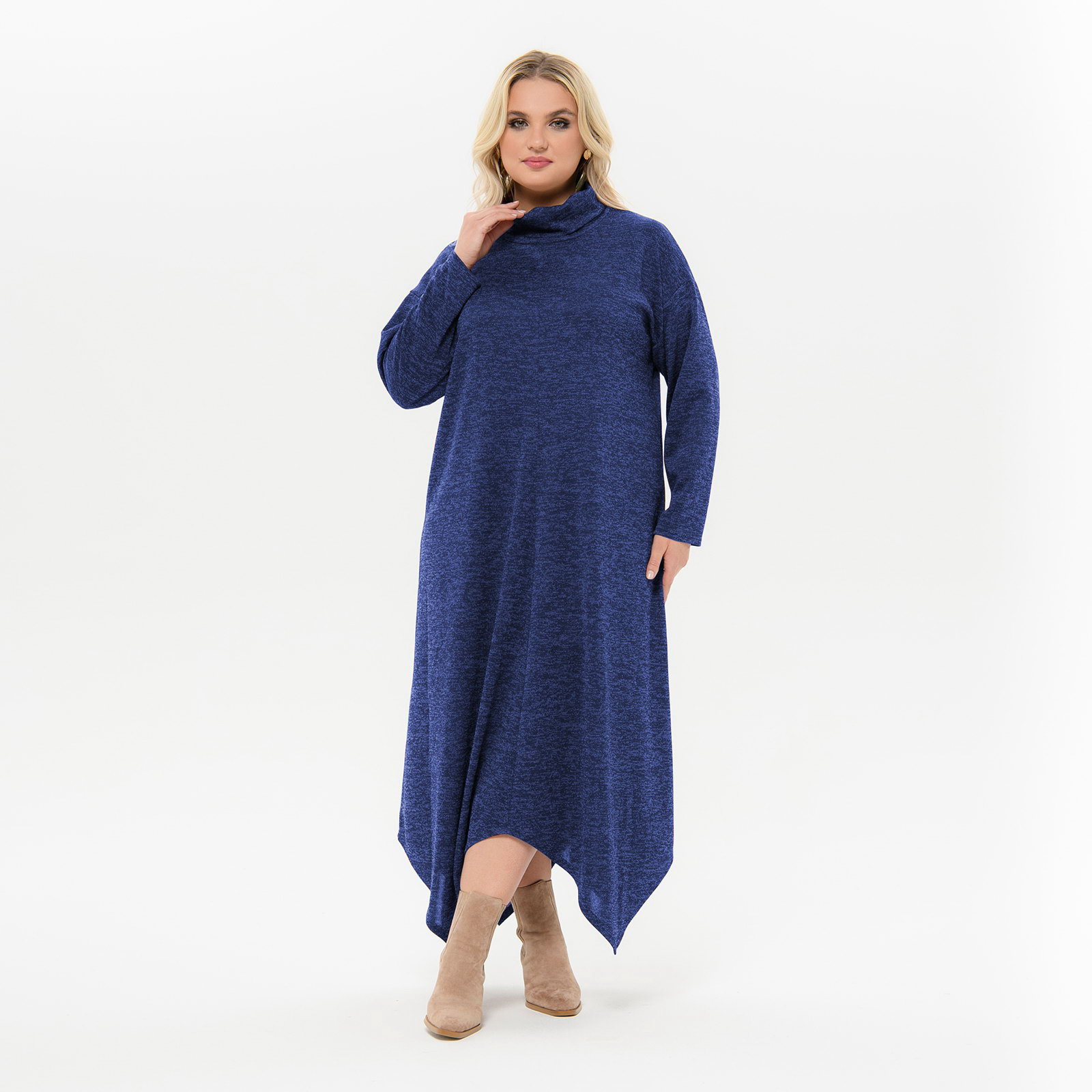 Платье с фигурной линией низа, из джерси-меланжа, васильковое