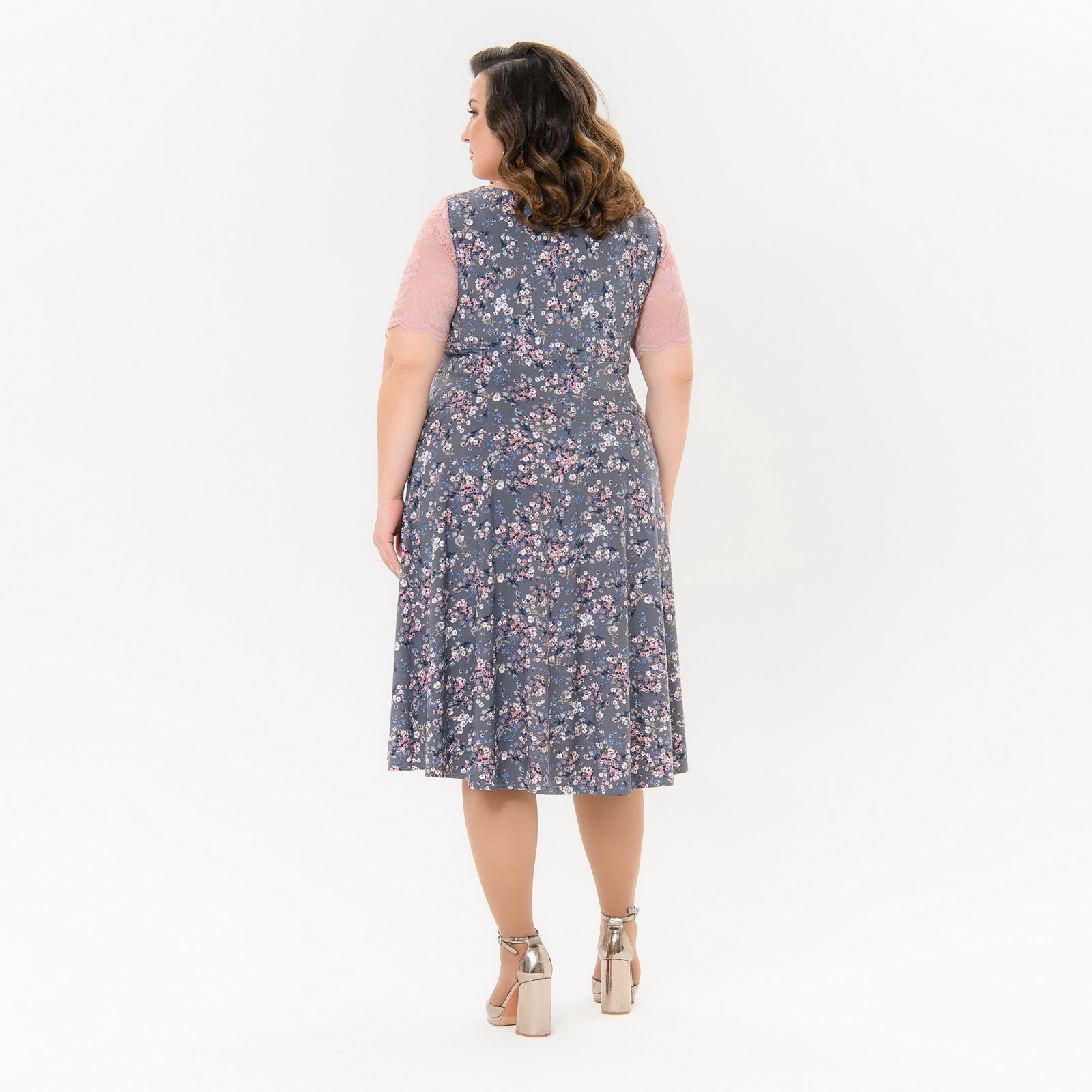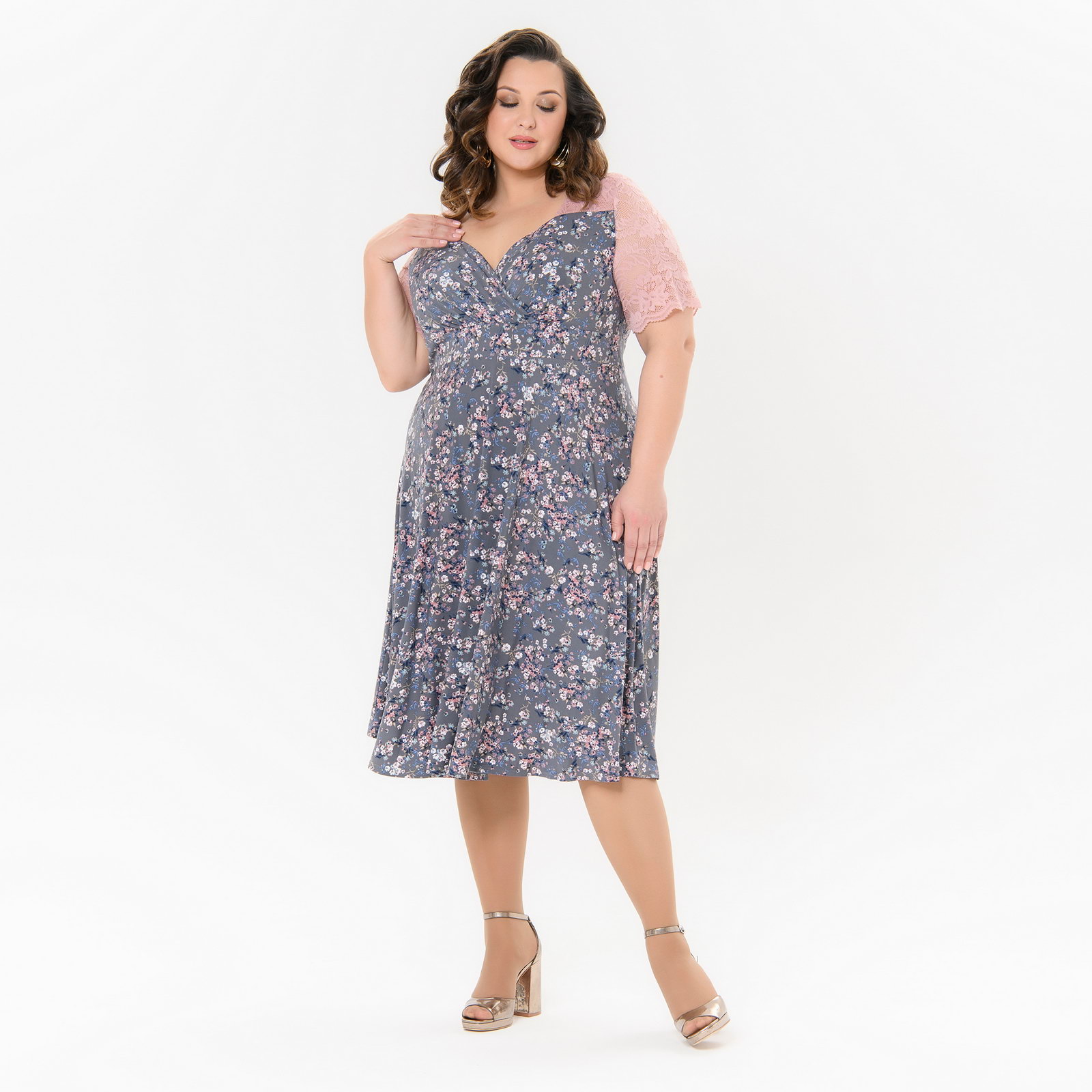Платье с отделкой из пудрового кружева, принт "французский серый"