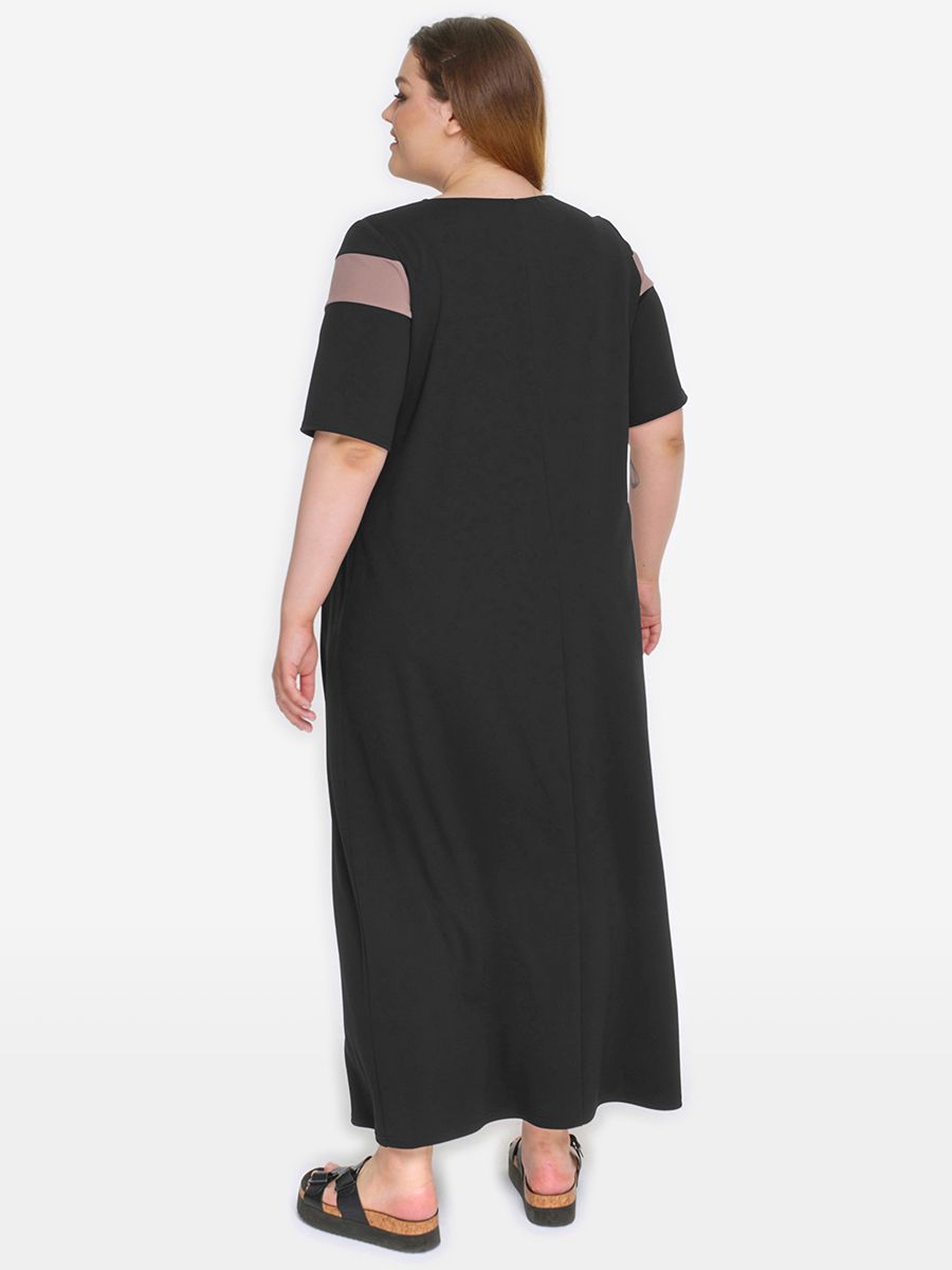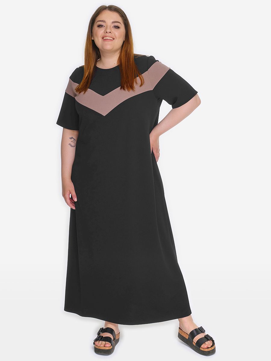 Платье с отделкой по кокетке и рукавам, черное, отделка кофе