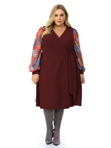 Платье свободное, А-силуэта. По переду кокетка, выкроенная углом, к которой притачана полоса отделочной ткани. "Поддерживают идею" свободные рукава, также выполненные с отделочной полосой на том же уровне, что и на переде платья.