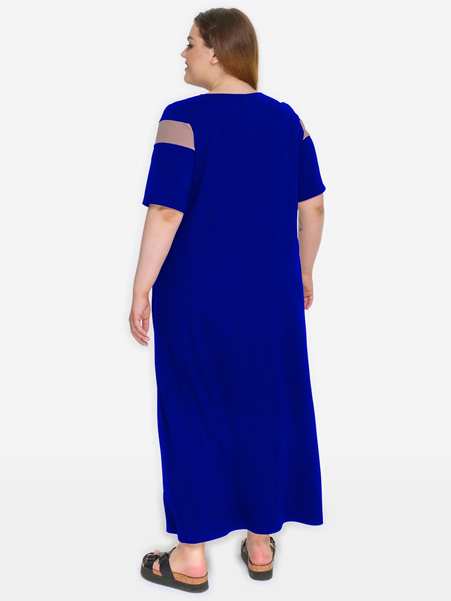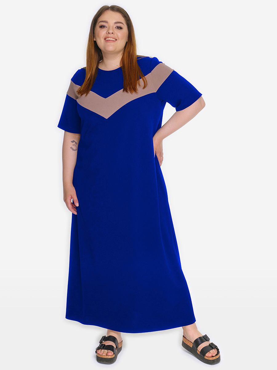 Платье с отделкой по кокетке и рукавам, васильковое, отделка кофе