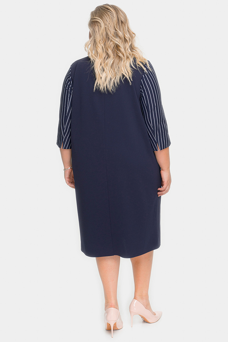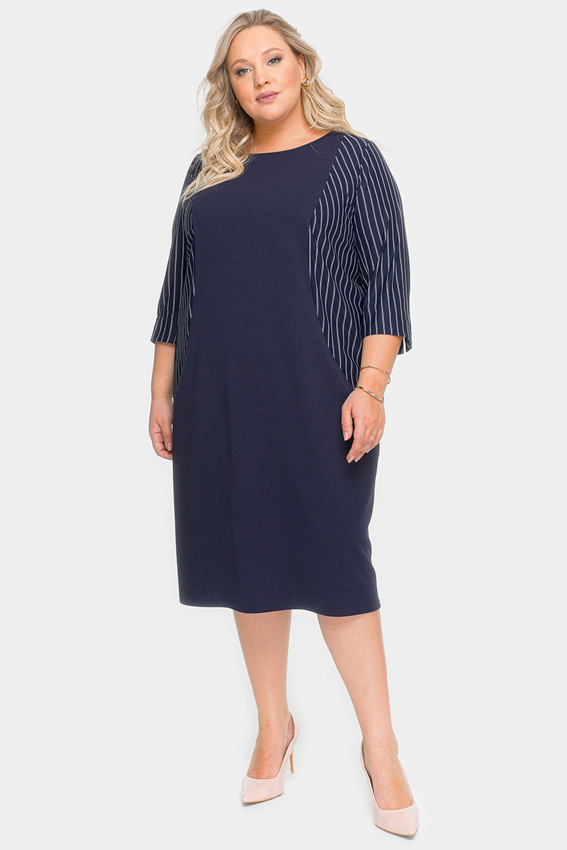 Платье с рельефами темно-синее, комбинированное