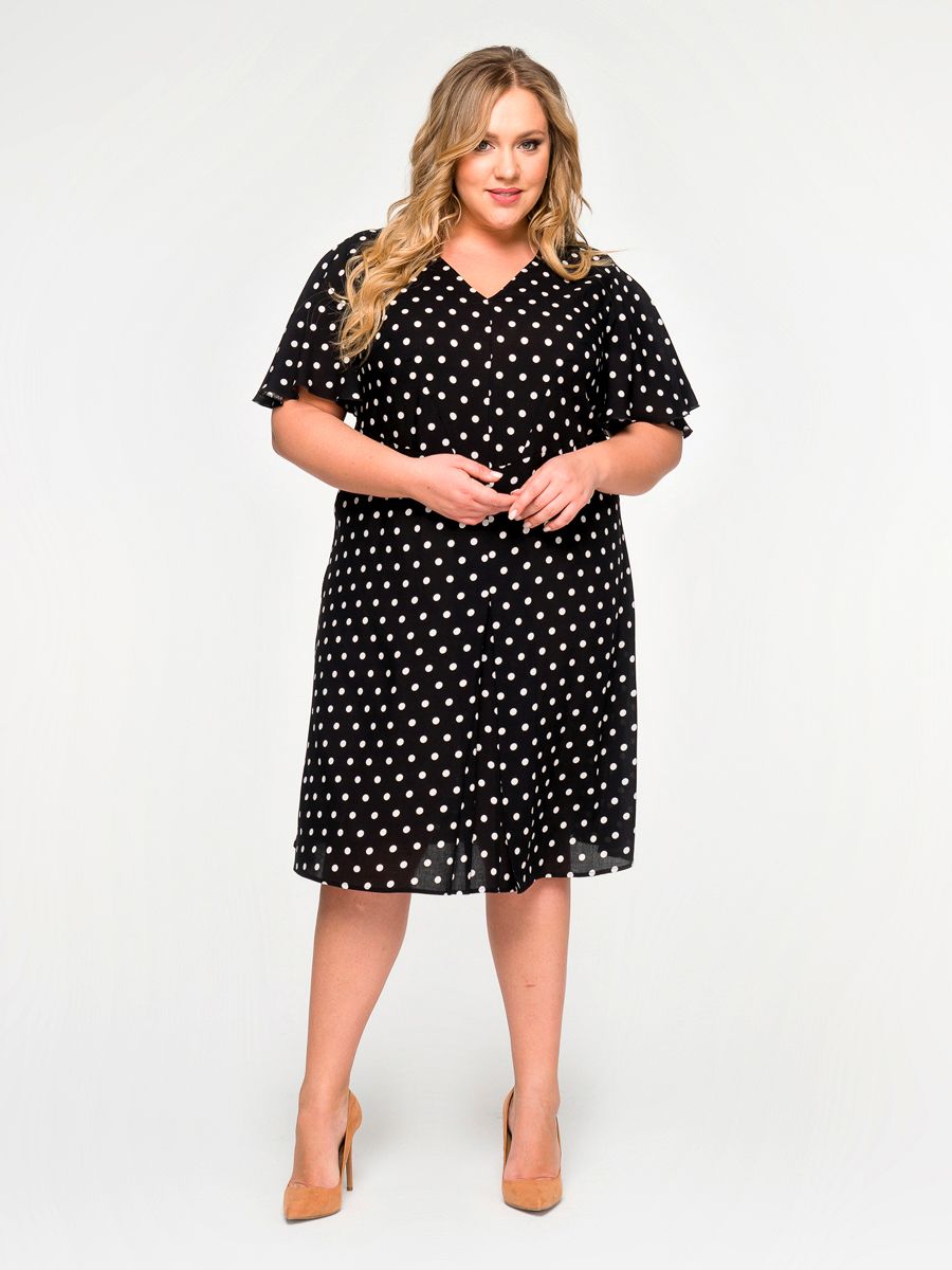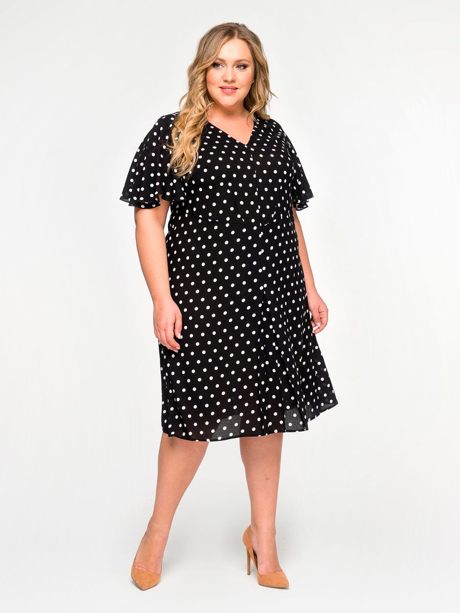 Платье с рукавами "крылышки" , штапель принт "горошек"
