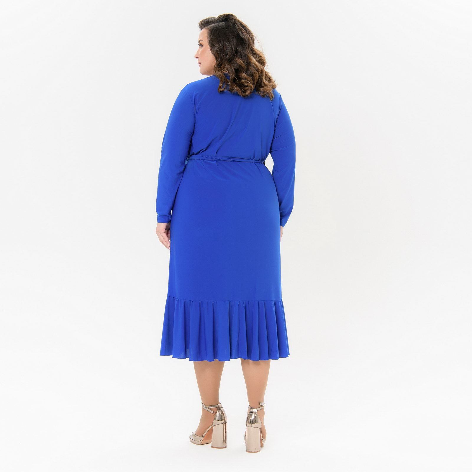 Платье с воланом из трикотажа - "масло", васильковое