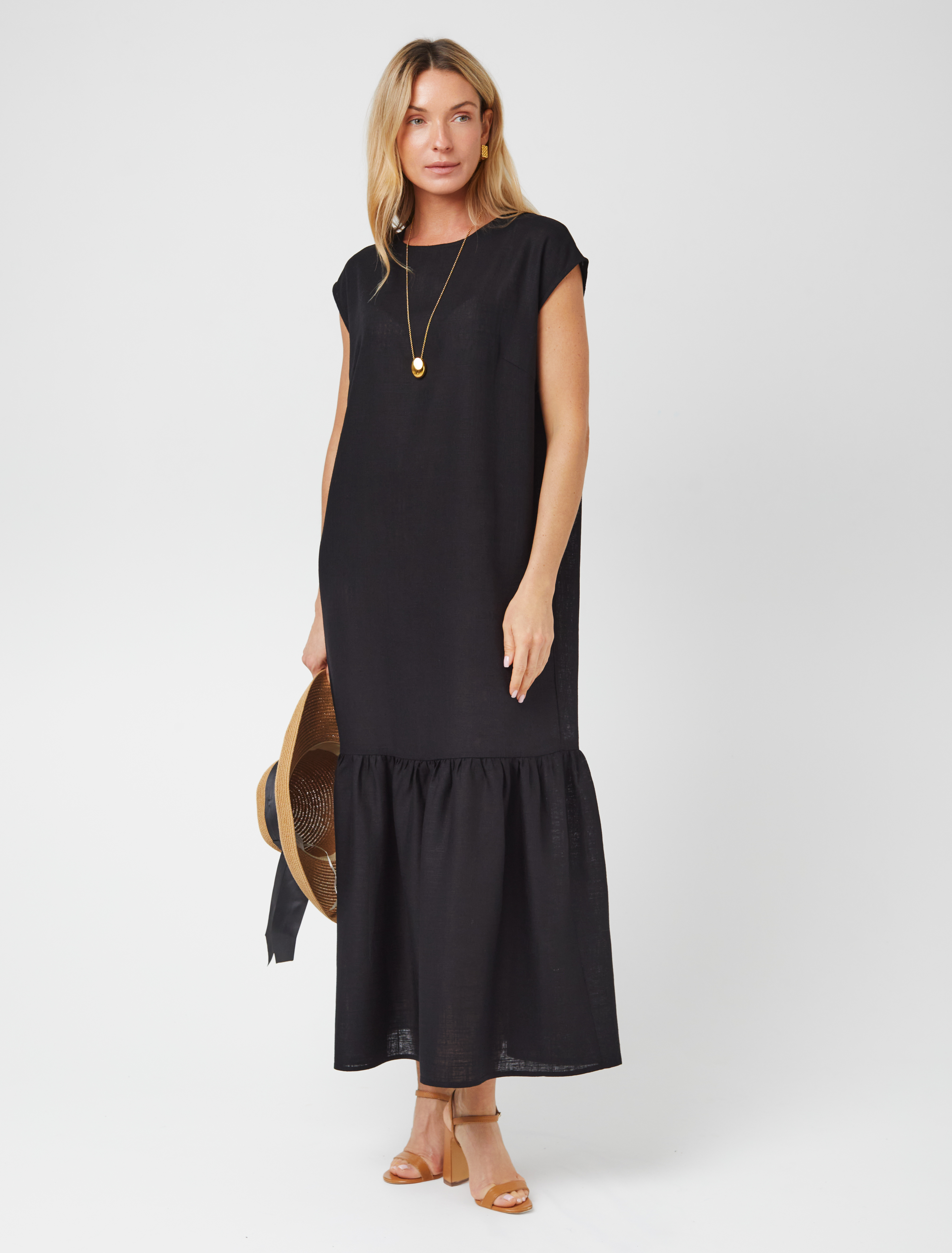 Платье длины миди прямого кроя с пышным воланом выполнено изо льна с вискозой. Сзади застежка на пуговицу из натурального перламутра. Лён в составе обеспечивает прочность и воздухопроницаемость, вискоза эластичность и гладкость ткани. Благодаря такому сочетанию изделие хорошо драпируется, меньше мнется и сохраняет форму в течении долгого времени. Свободный крой подходит для любой фигуры.