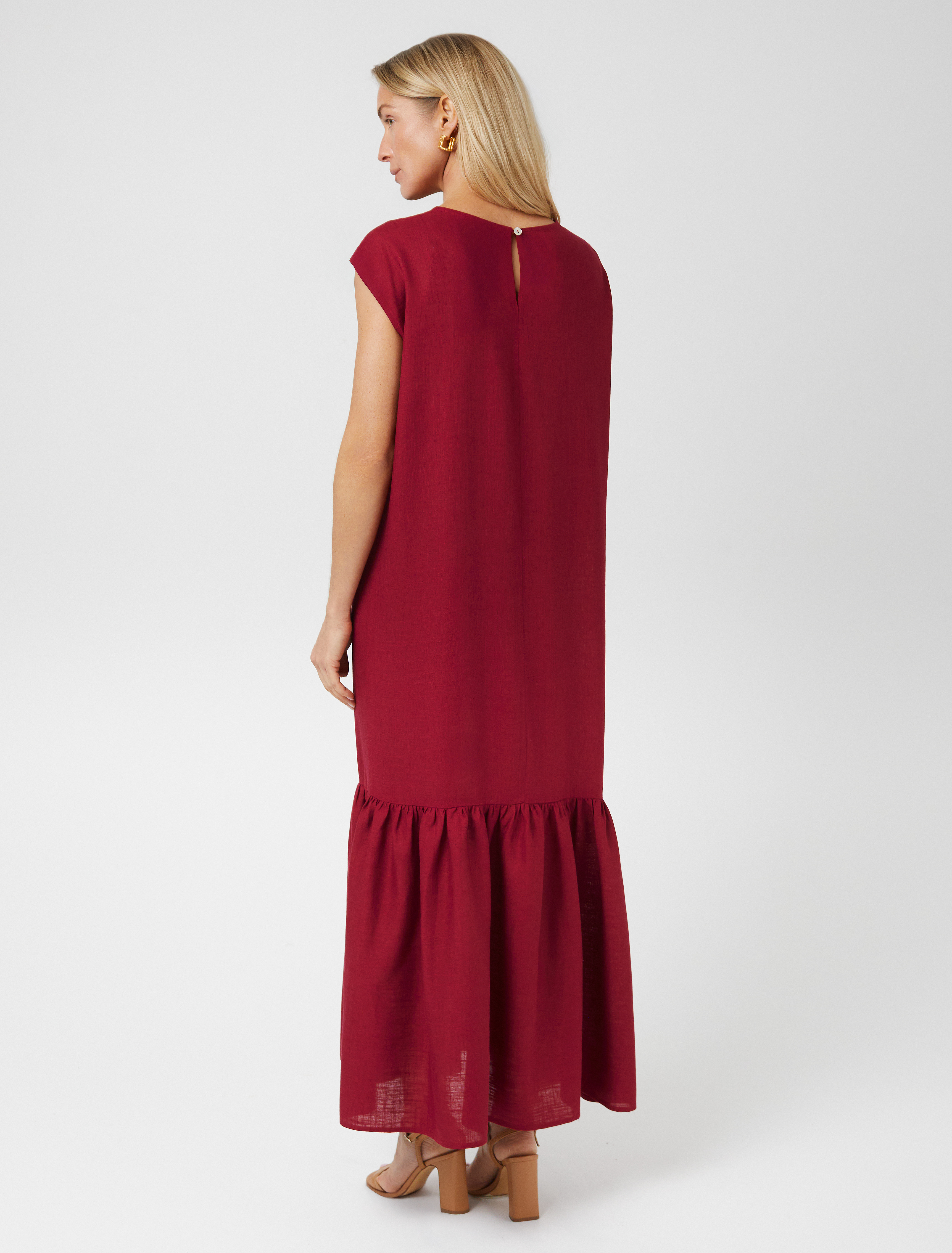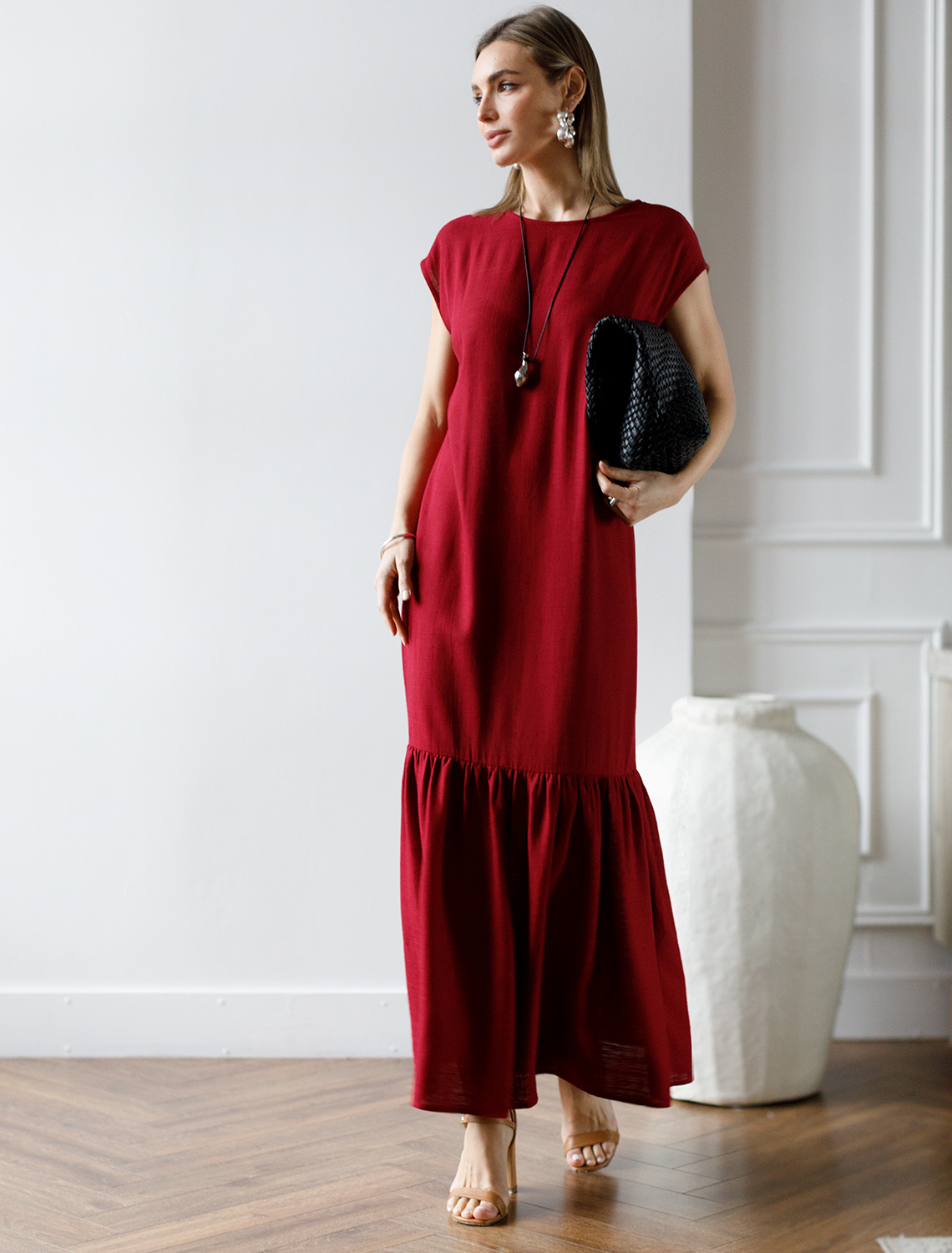 Платье с воланом изо льна с вискозой D22.207 гранатовый