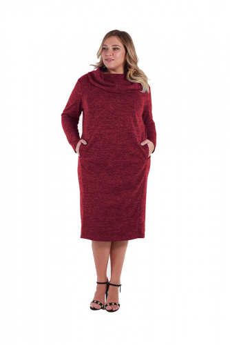Платье с воротником "хомут" из джерси меланж, бордового цвета