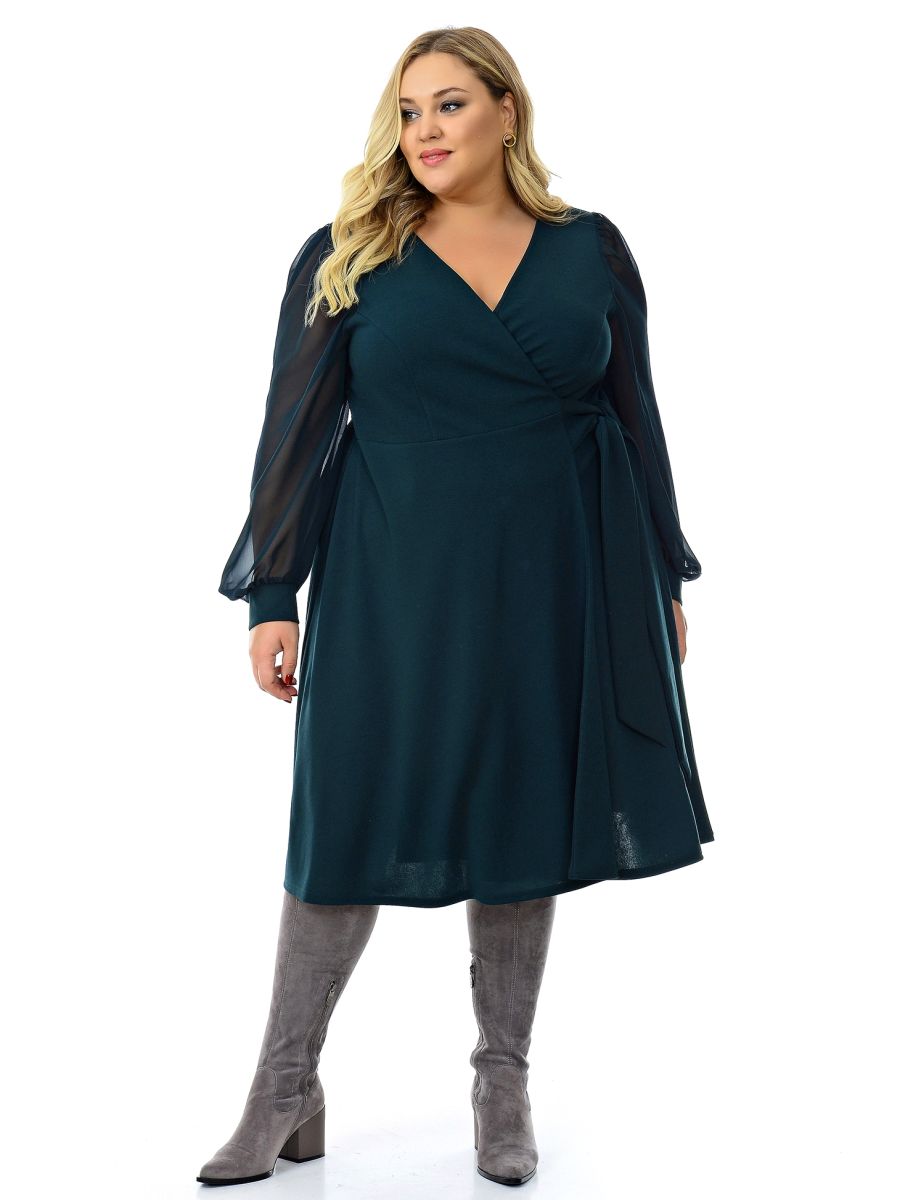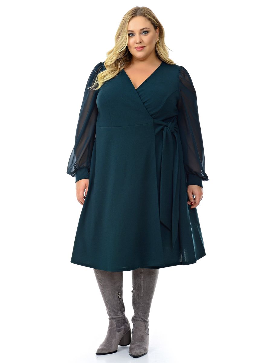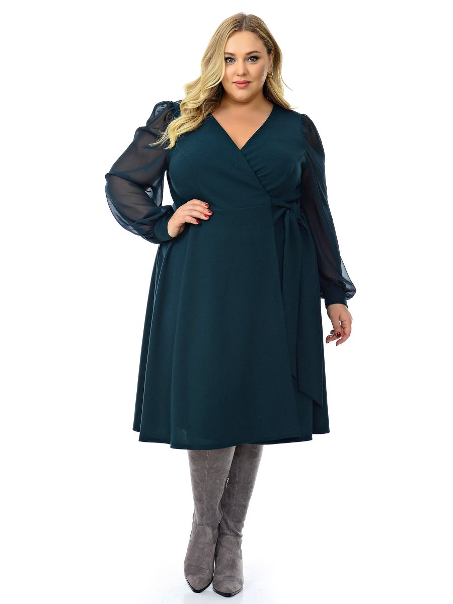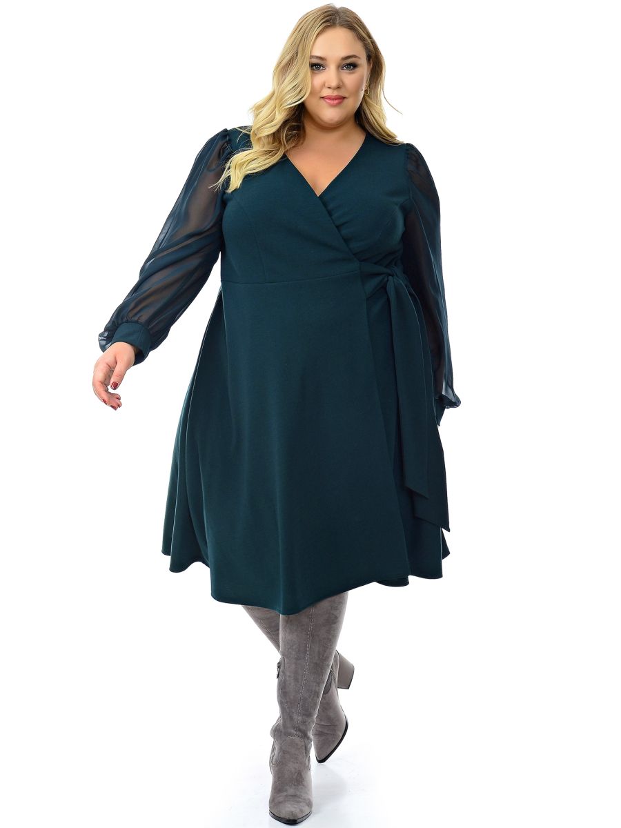 Платье с запАхом изумрудное с шифоновыми рукавами.