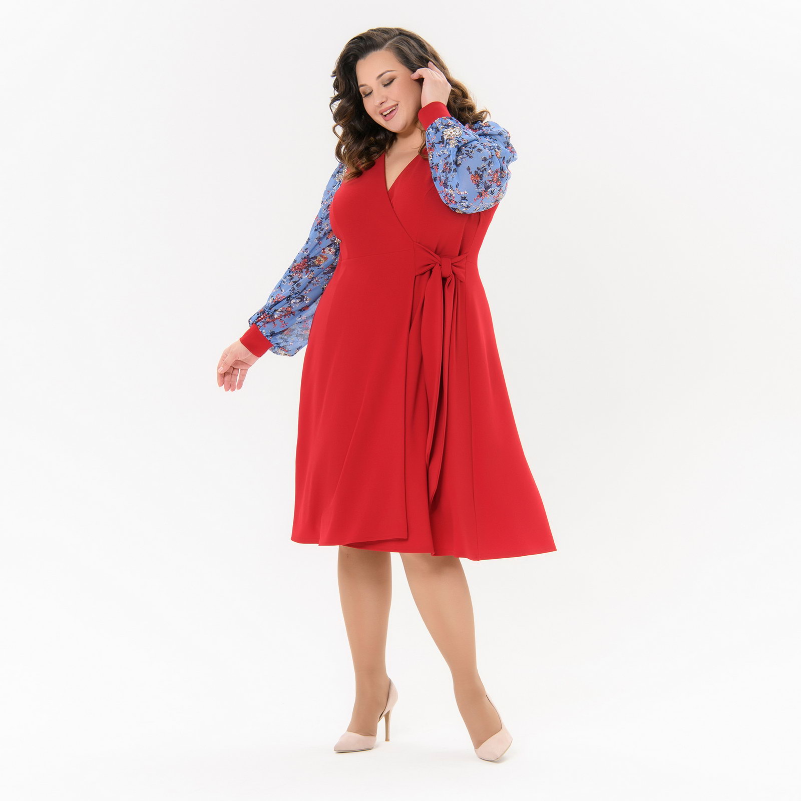 Платье с запАхом красное, с рукавами из шифона *