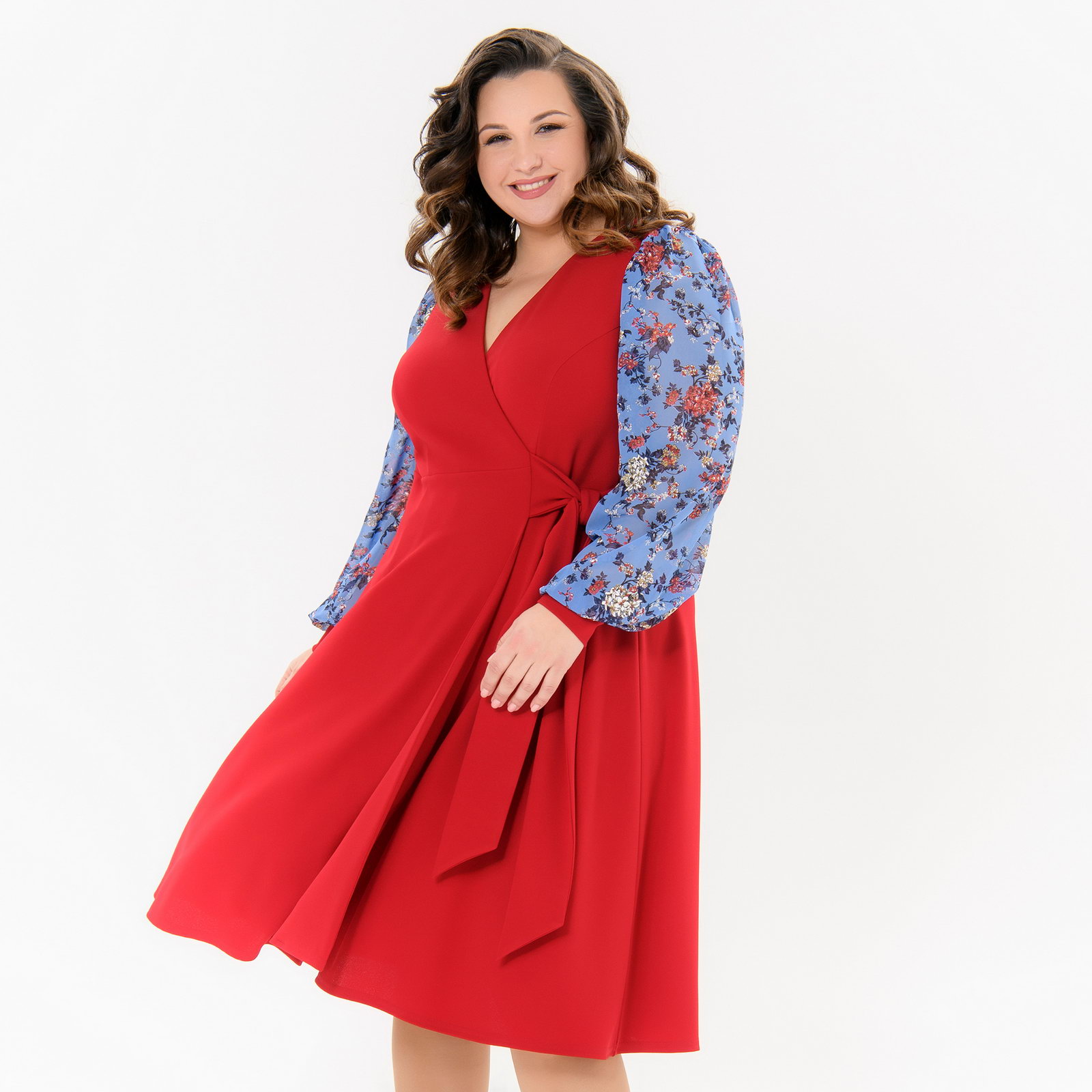 Платье с запАхом красное, с рукавами из шифона