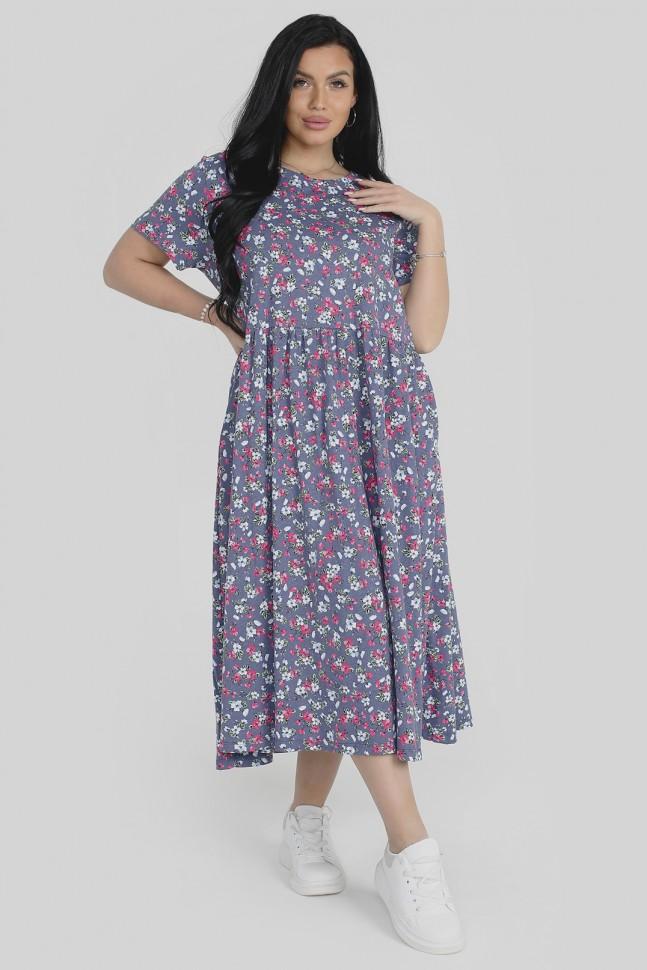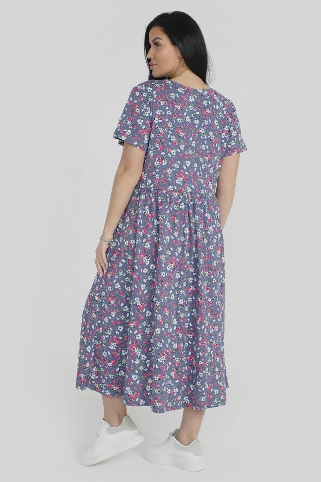 Красивое платье отрезное свободного кроя, короткий рукав, карманы в боковых швах. Состав: набивное кулирное полотно 100% хлопок. Размеры:50-68