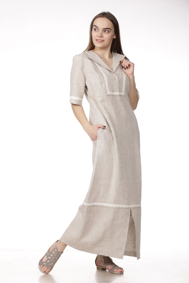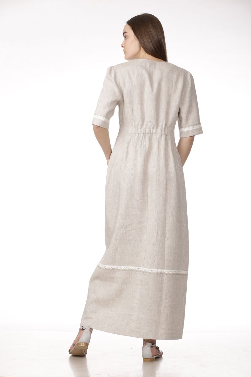 Описание: Платье с кружевом, кокетка, боковые карманы, на спинке по линии талии резинка, лен.