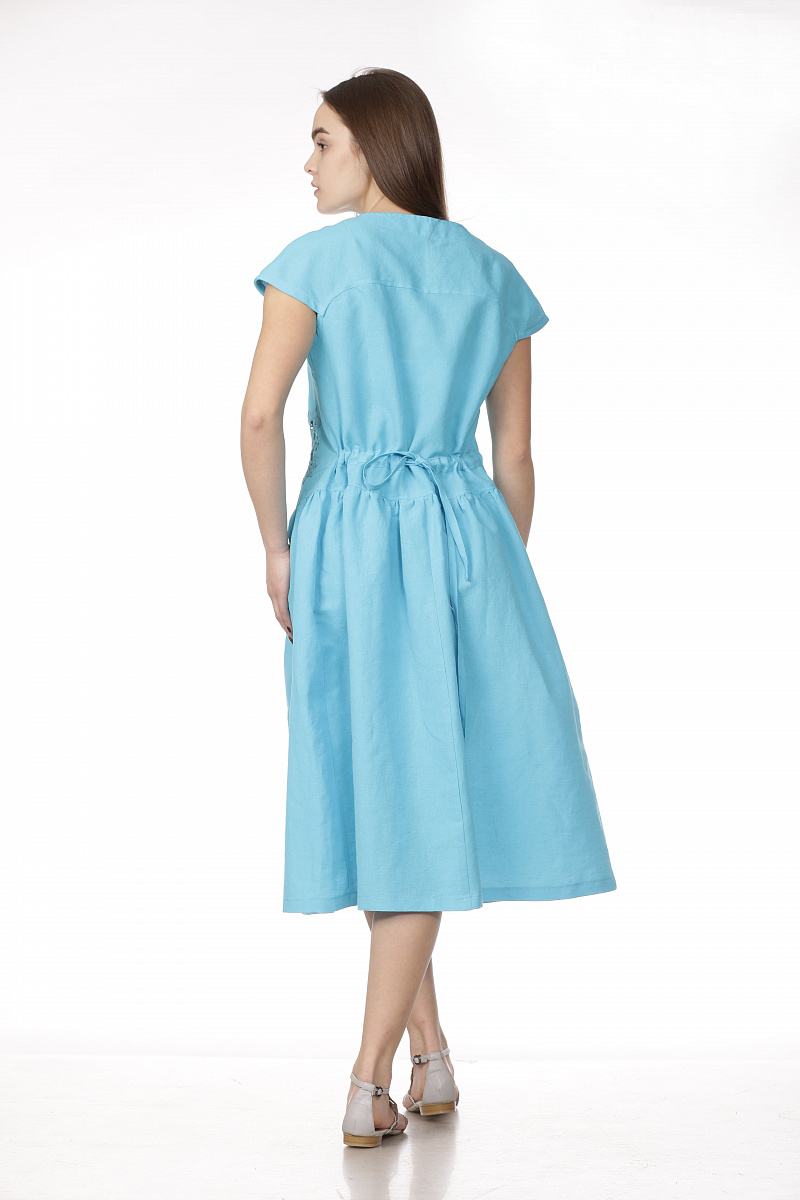 Описание: Платье с отделкой крючок, с поясом на спинке, лен.