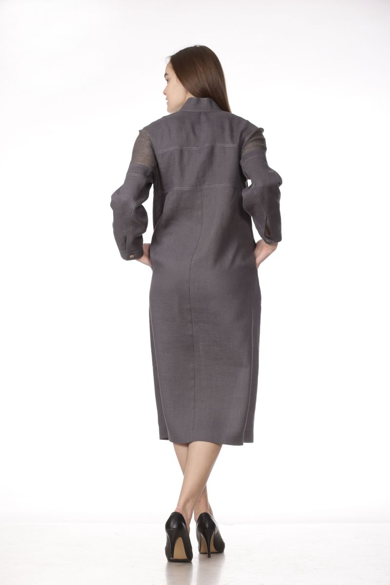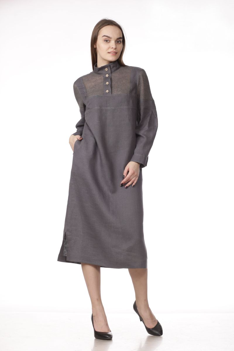Описание: Платье с карманами, воротник стойка, вставки трикотаж, лен.