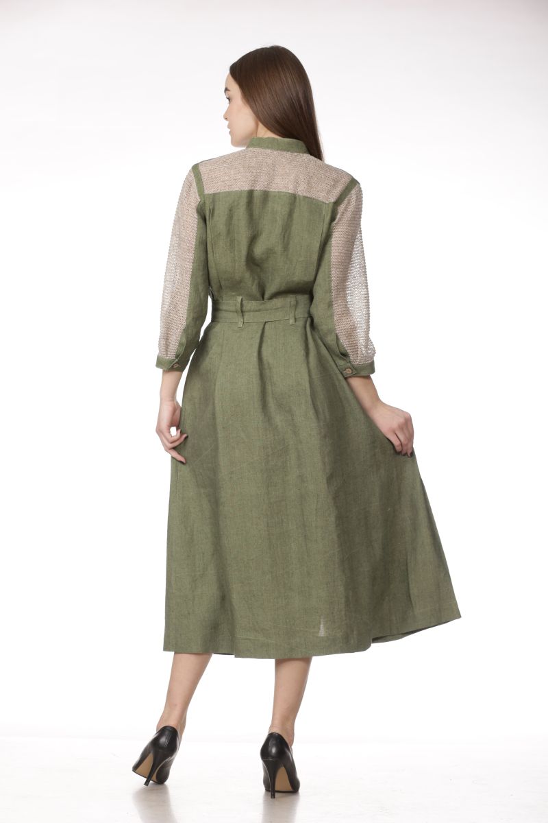 Описание: Платье, отделка трикотаж лен.