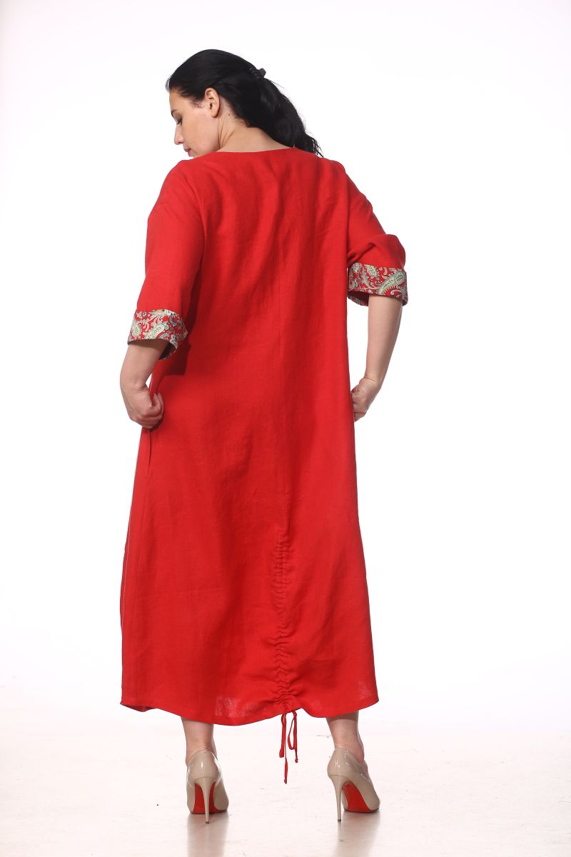 Описание: Платье свободного силуэта, боковые карманы, отделка штапель, лен,