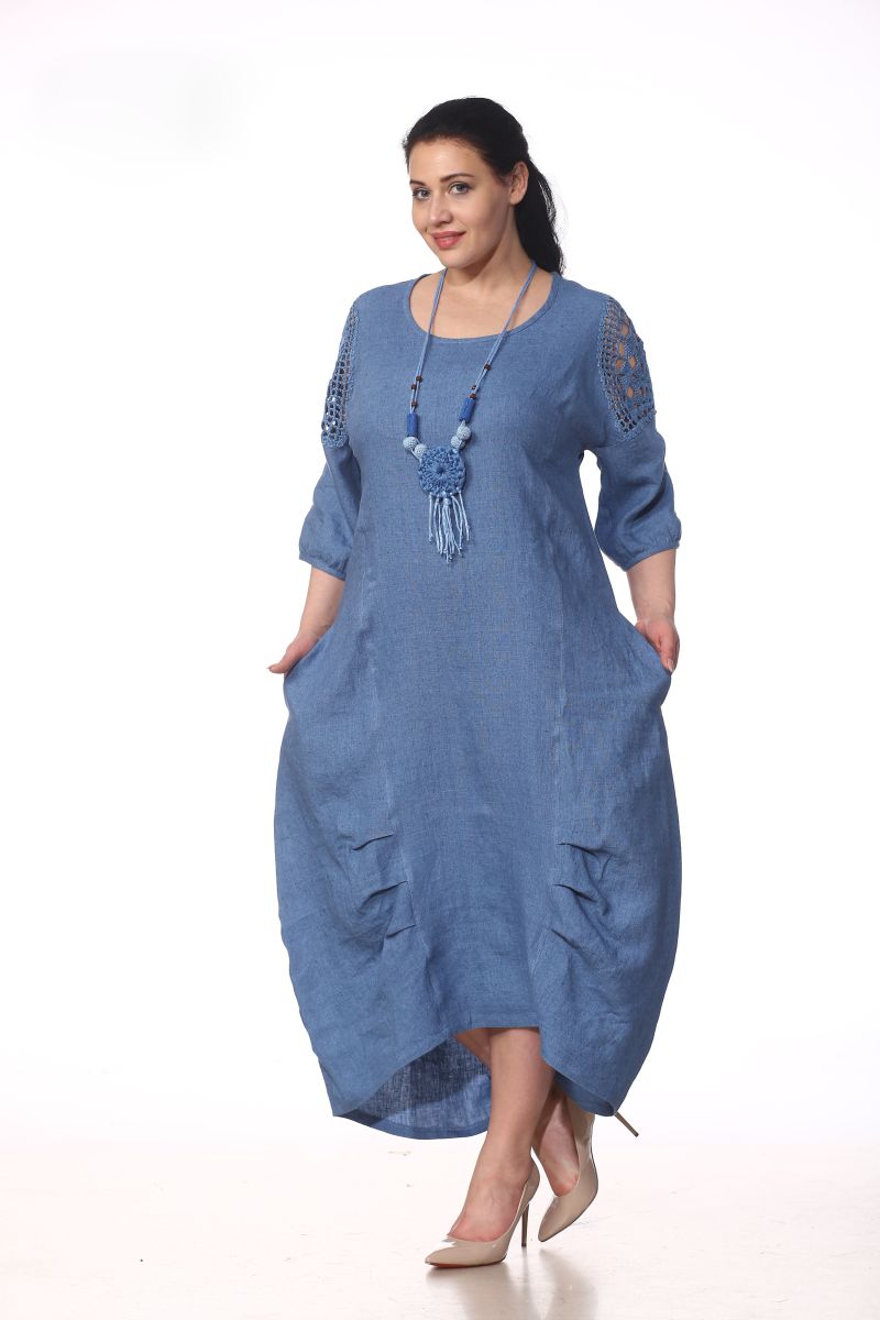 Описание: Платье с бусами, отделка крючок, лен,