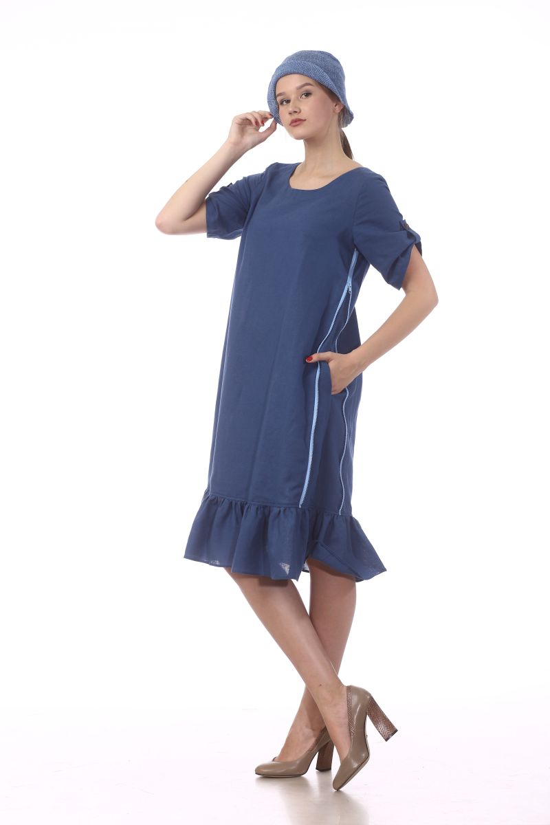 Описание: Платье с карманами, оборка, молнии, украшение бусы.