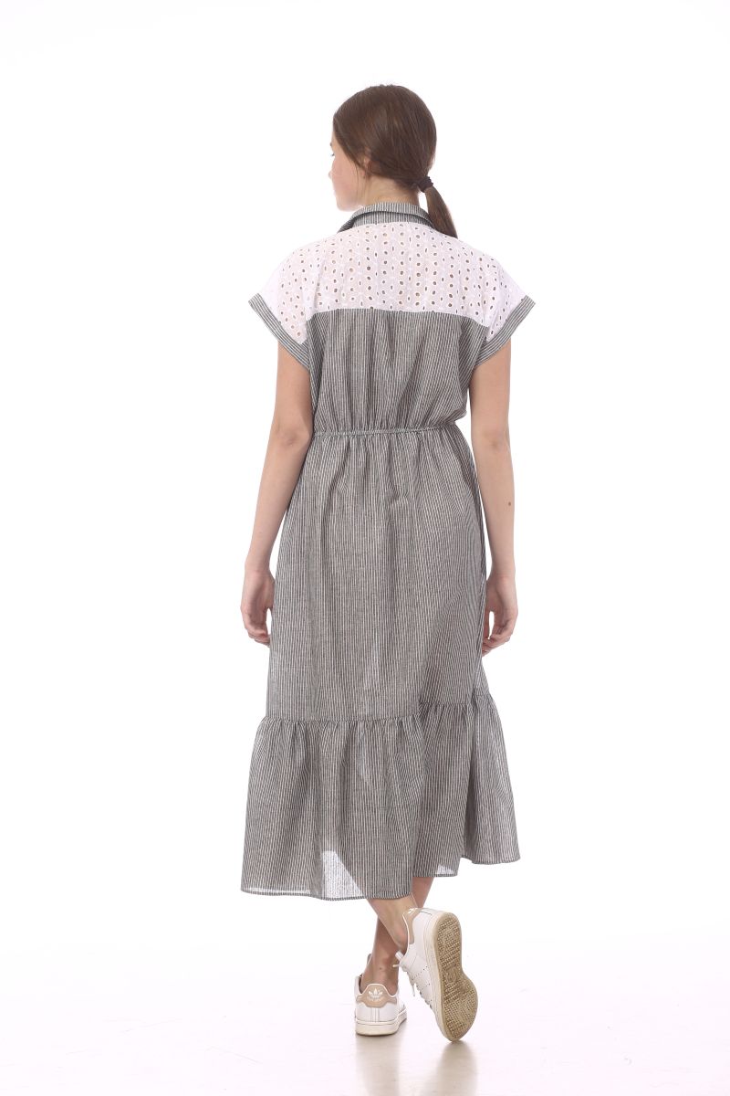 Описание: Платье с резинкой по линии талии, воротник, застежка на пуговицы