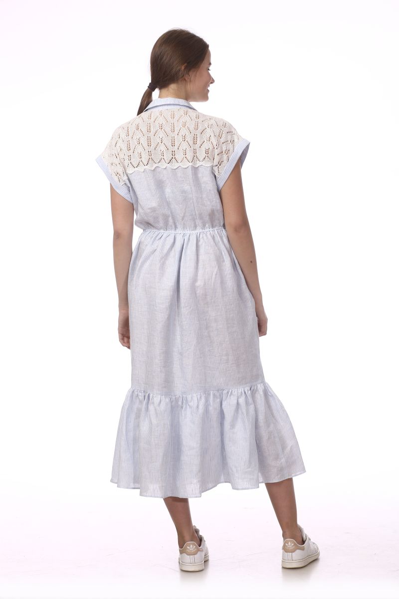 Описание: Платье с трикотажем, резинкой по линии талии, воротник, застежка на пуговицы,