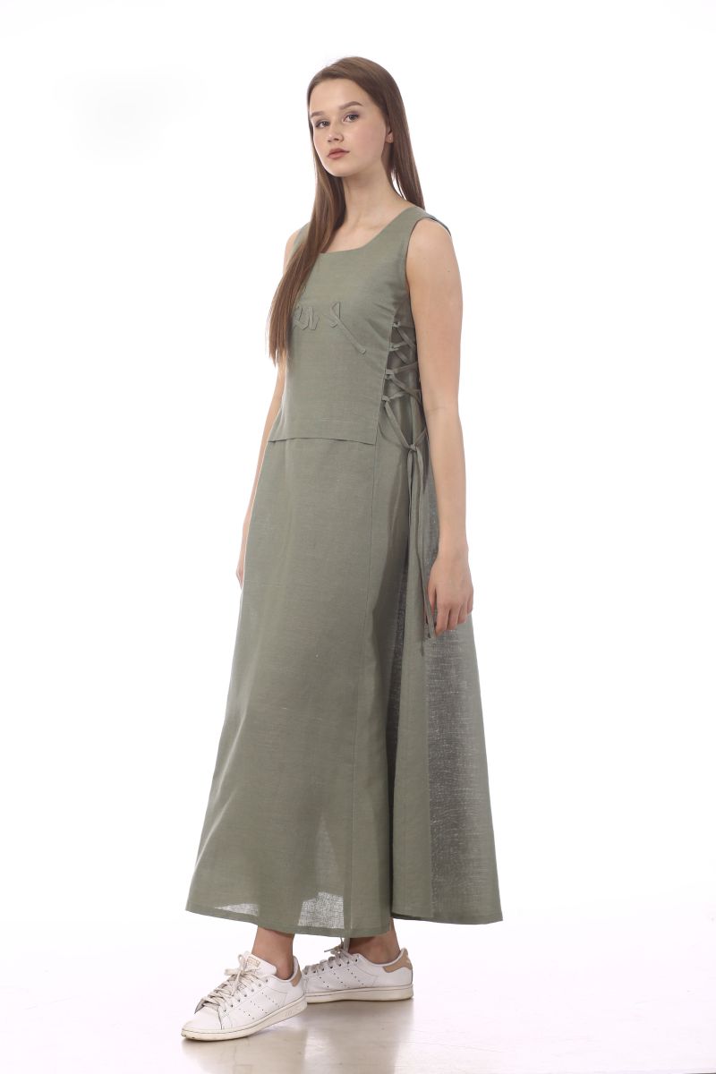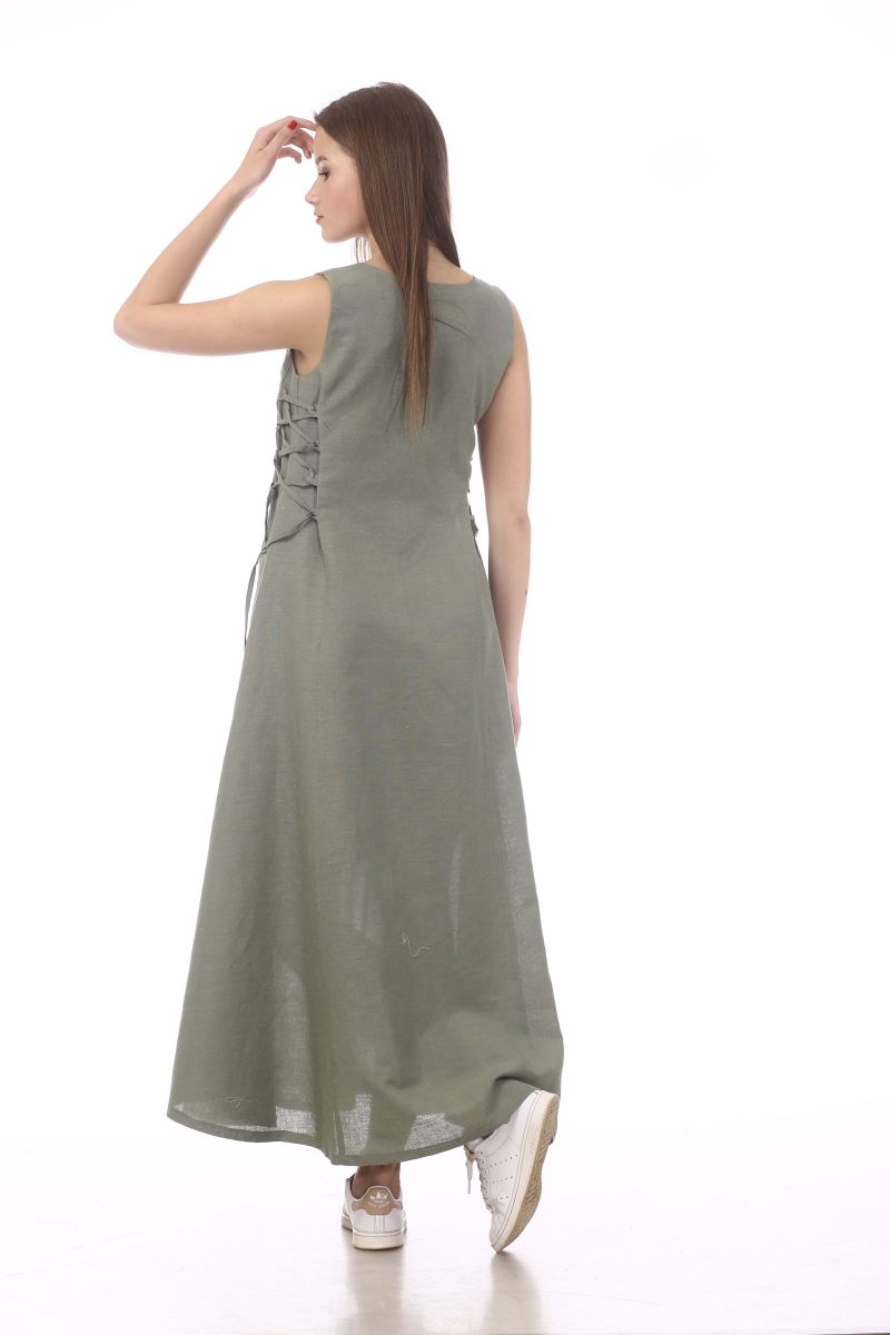 Описание: Платье, отделка шнуром, лен,