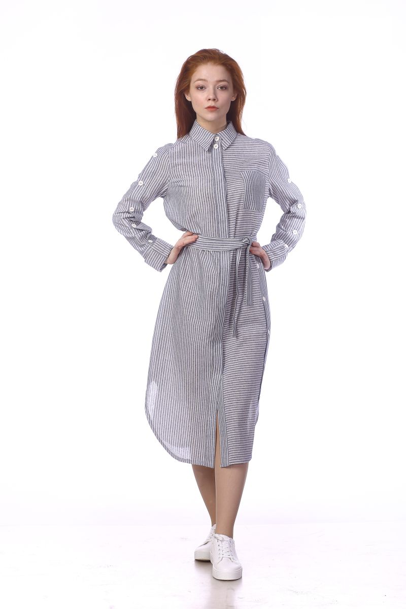 Описание: Платье с поясом, потайная застежка на пуговицы