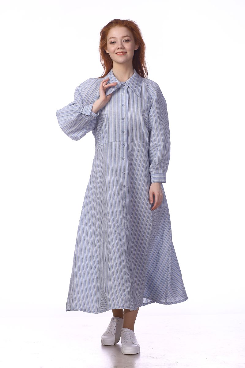 Описание: Платье с поясом, воротник, застежка на пуговицы
