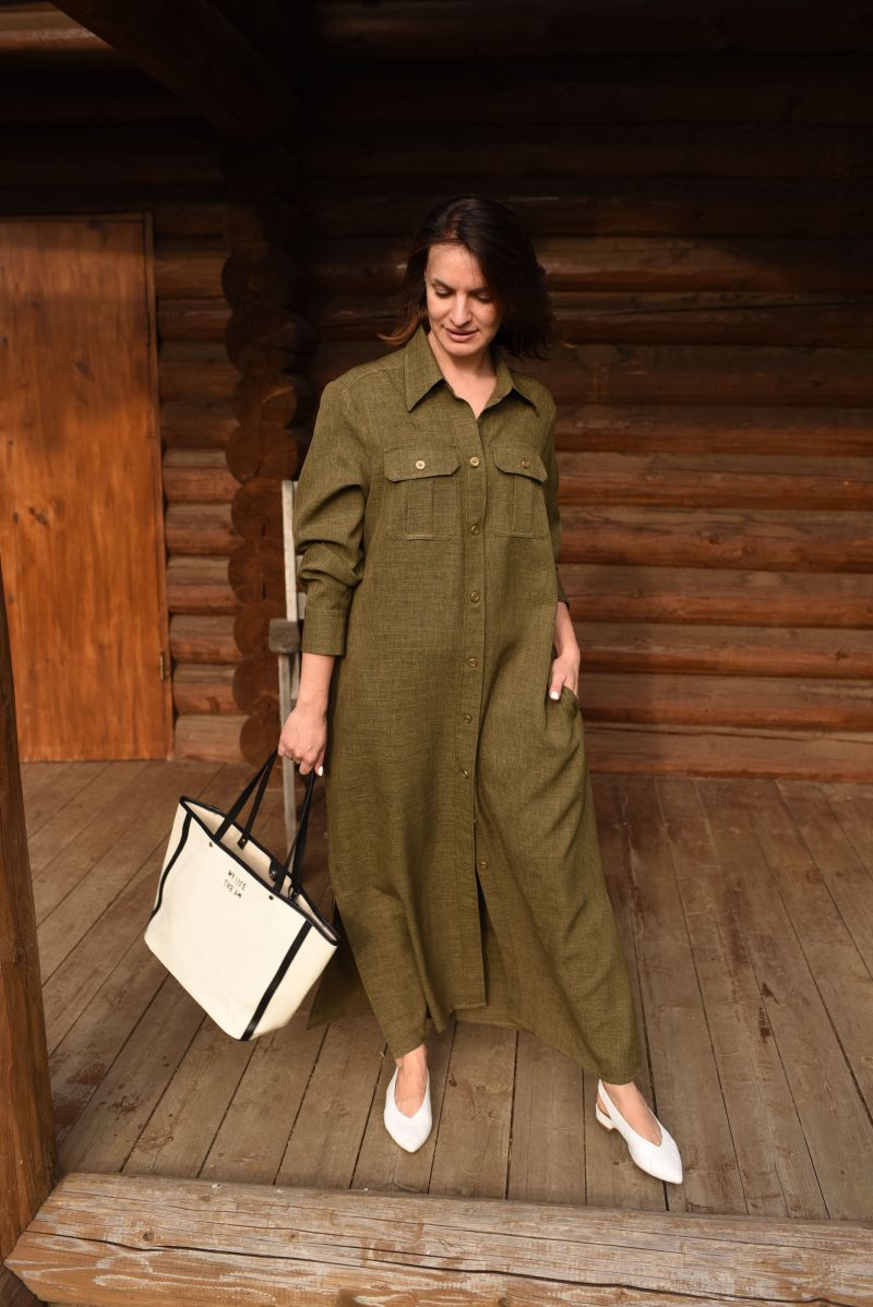 Описание: Платье прямого силуэта, застежка на пуговицы,