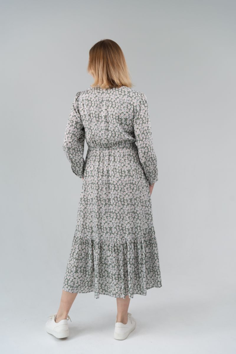 Описание: Платье с застежкой на пуговицы, отрезное по линии талии, с поясом, на спинке с резинкой по линии талии, в боковых швах карманы, рукава на сборке внизу манжета.