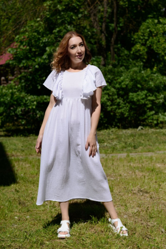 Описание: Платье с оборкой внизу, рукава на сборке, с карманами по бокам, на спинке вырез, хлопколен.