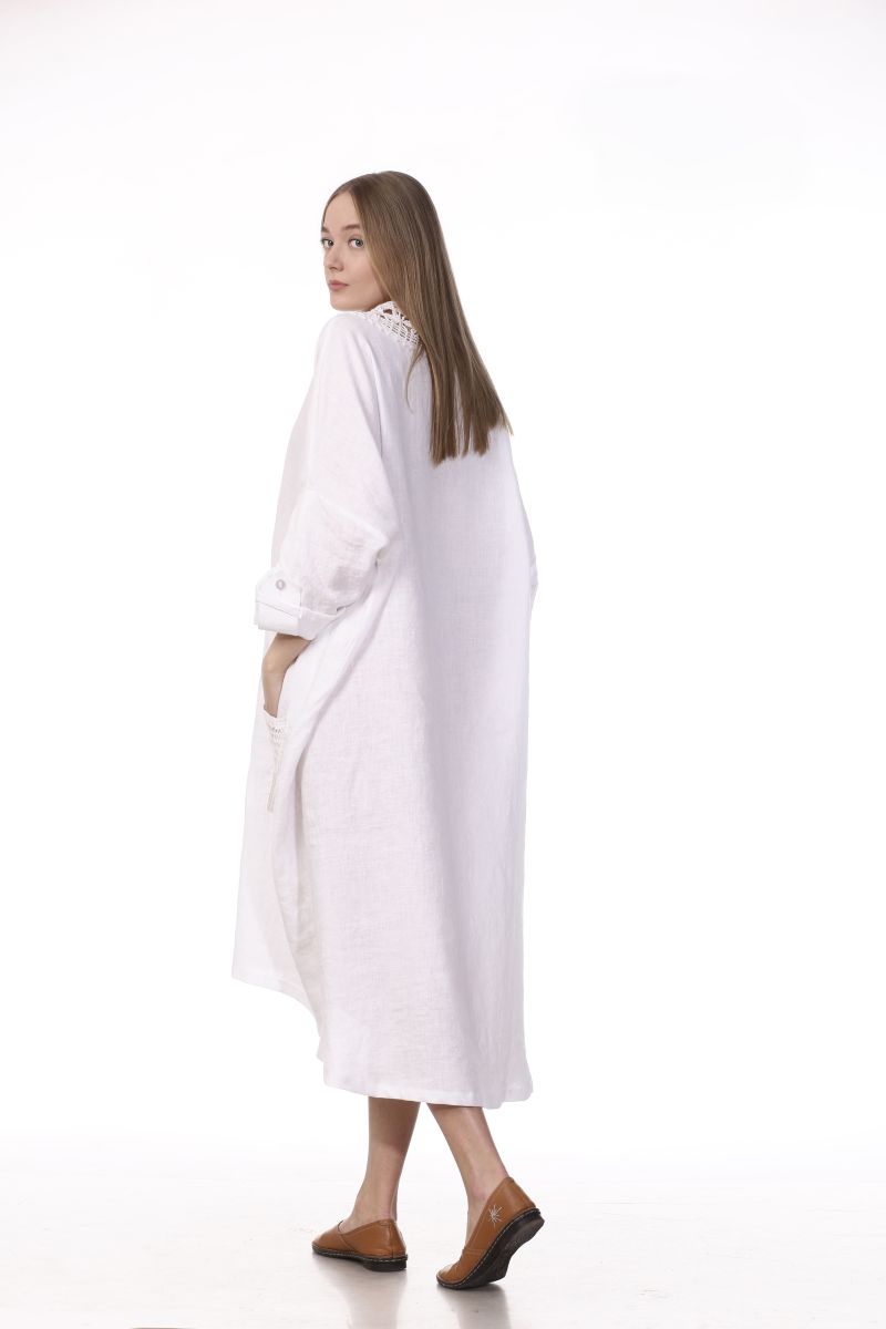 Описание: Платье свободного силуэта, отделка крючок, ткань вареный лен.