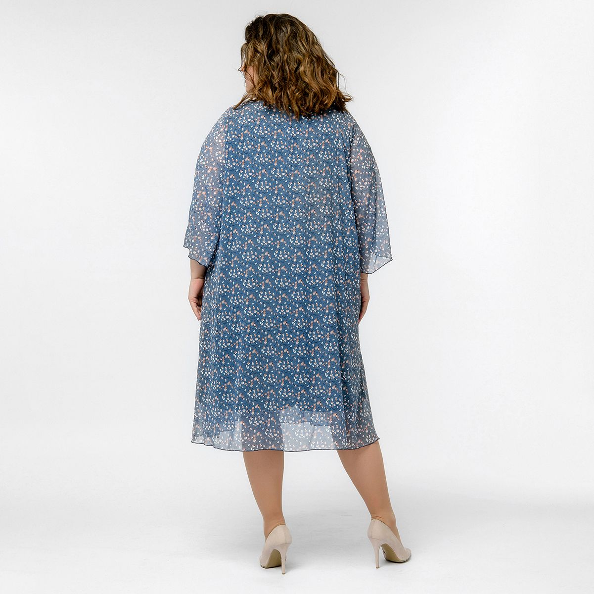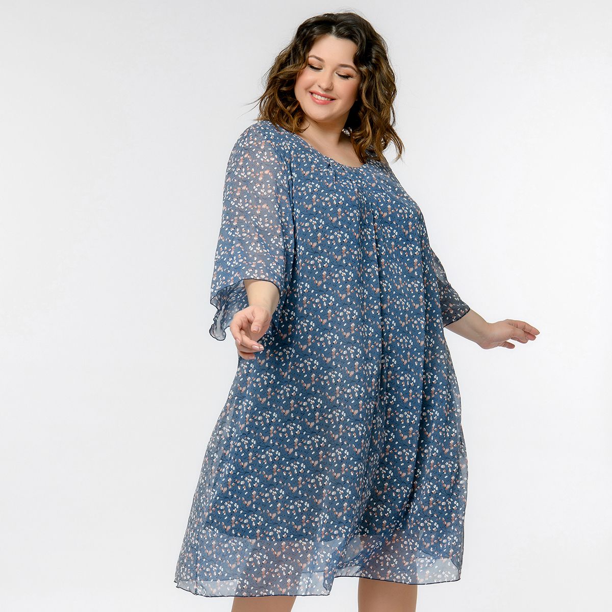 Воздушное платье силуэта трапеция из шифона с расклешенным рукавом. По горловине переда заложены защипы.