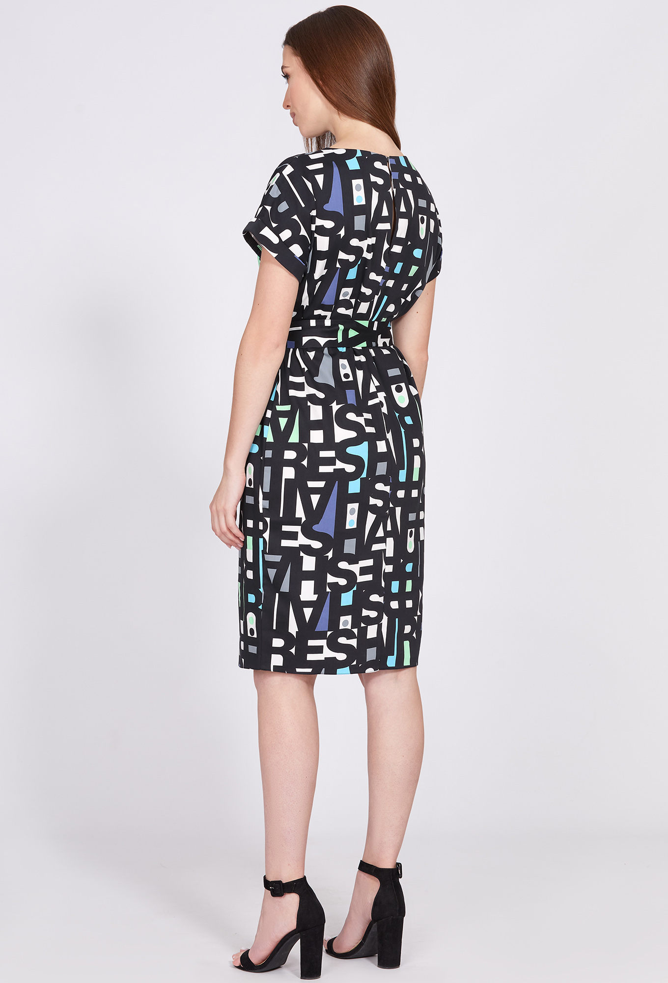 Платье прямого силуэта из полотна со стильным принтом , спущенной линией плеча с цельнокроеными рукавами и манжетами- отворотами.