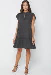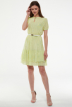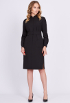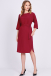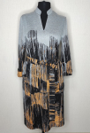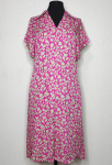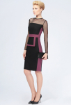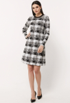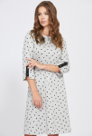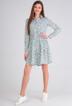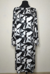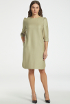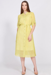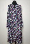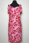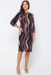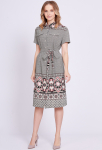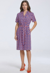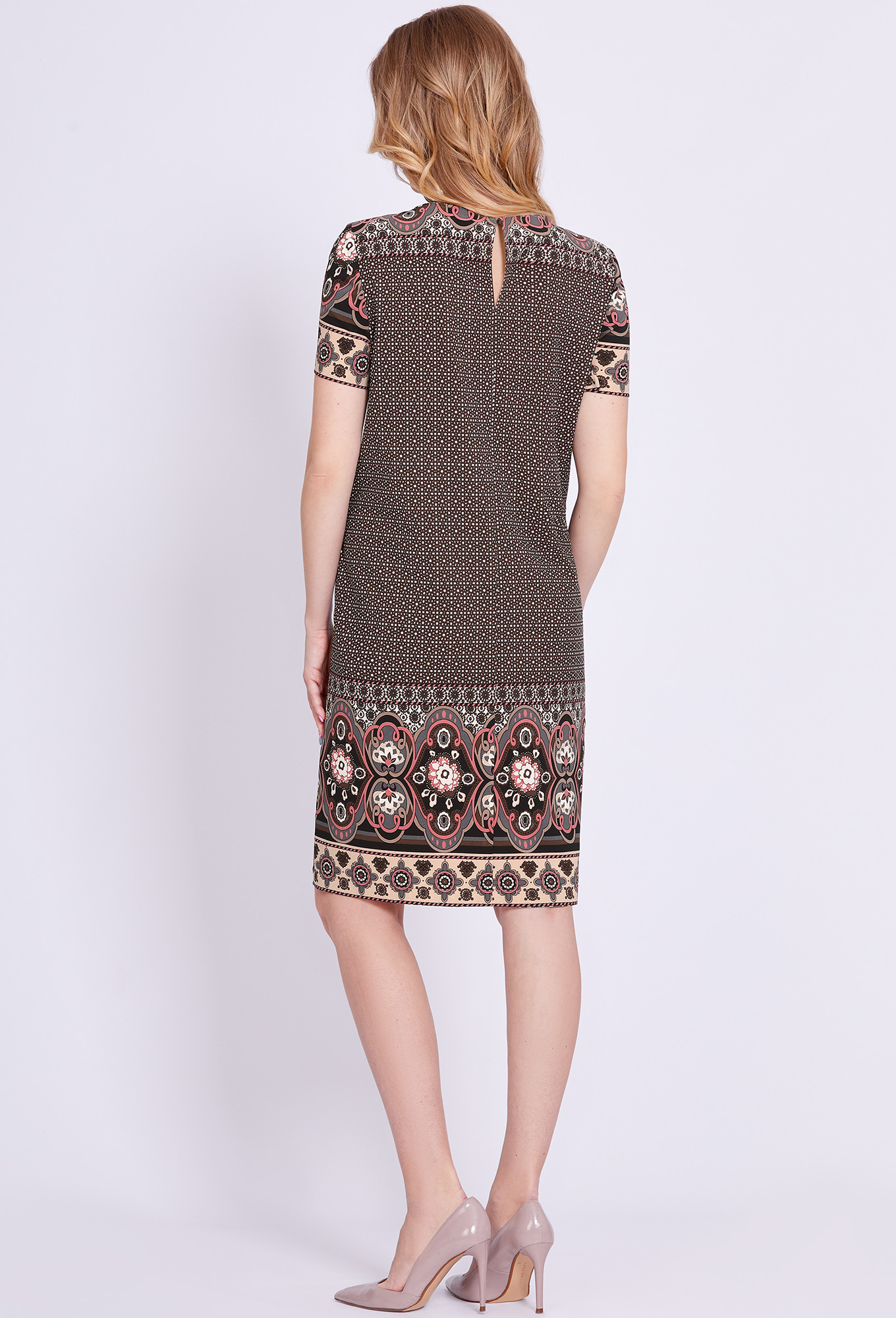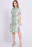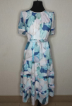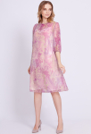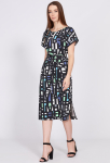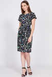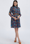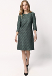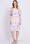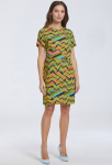 Платье прямого силуэта, выполнено из ткани с ярким интересным принтом, с округлой формой горловины, втачными рукавами, в среднем шве спинки обработана застёжка на одну навесную петлю и пуговицу.