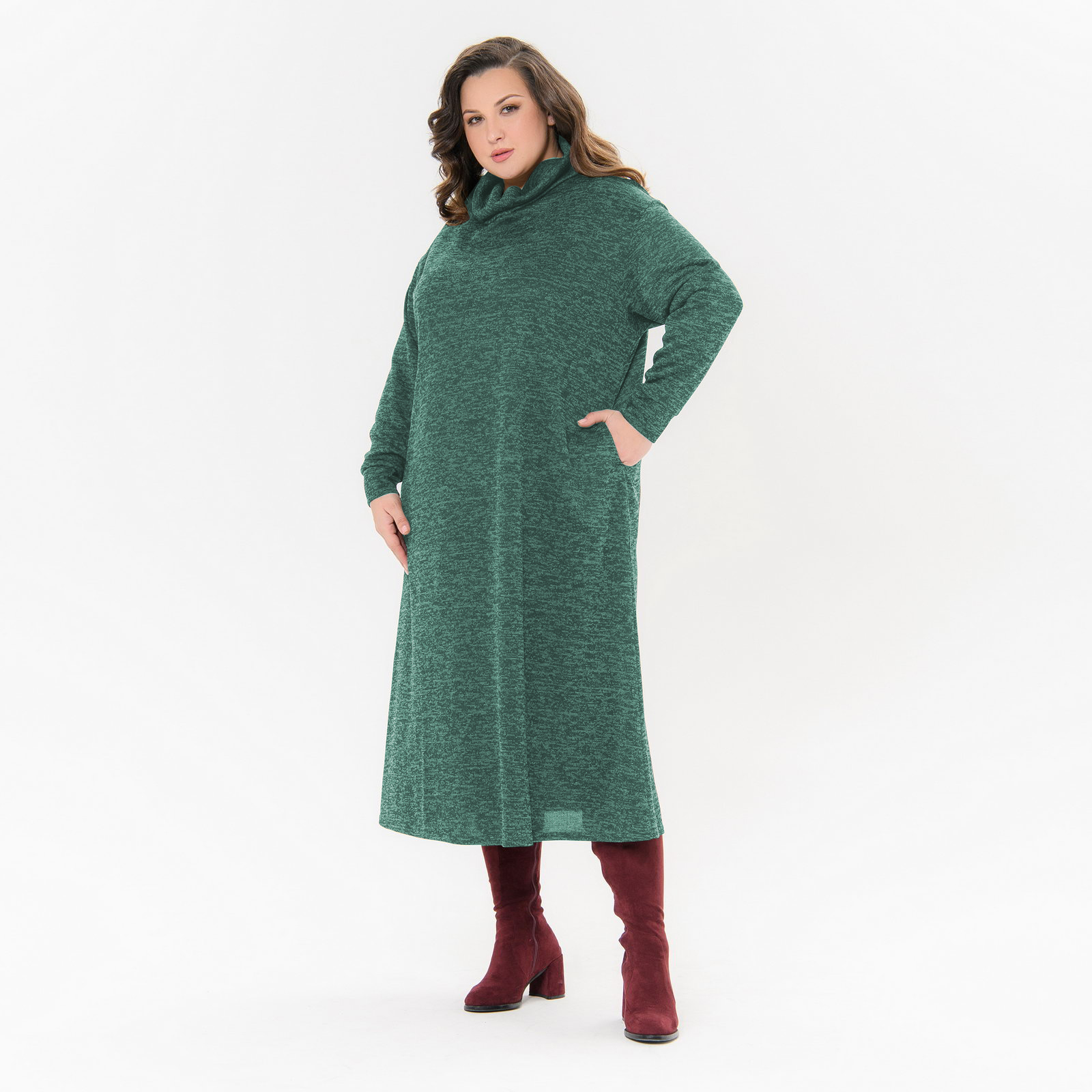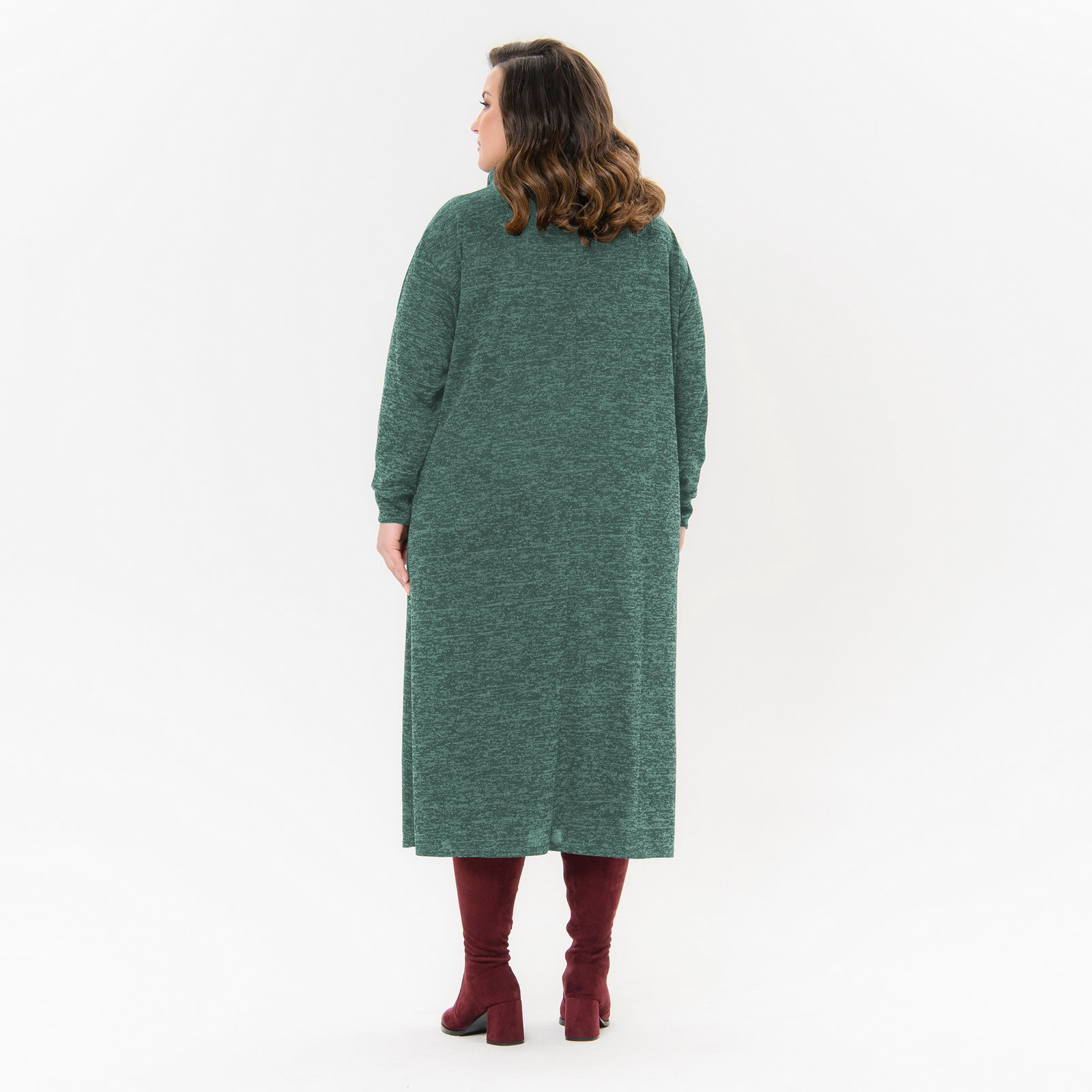 Платье - свитер из меланжевого джерси, изумрудное