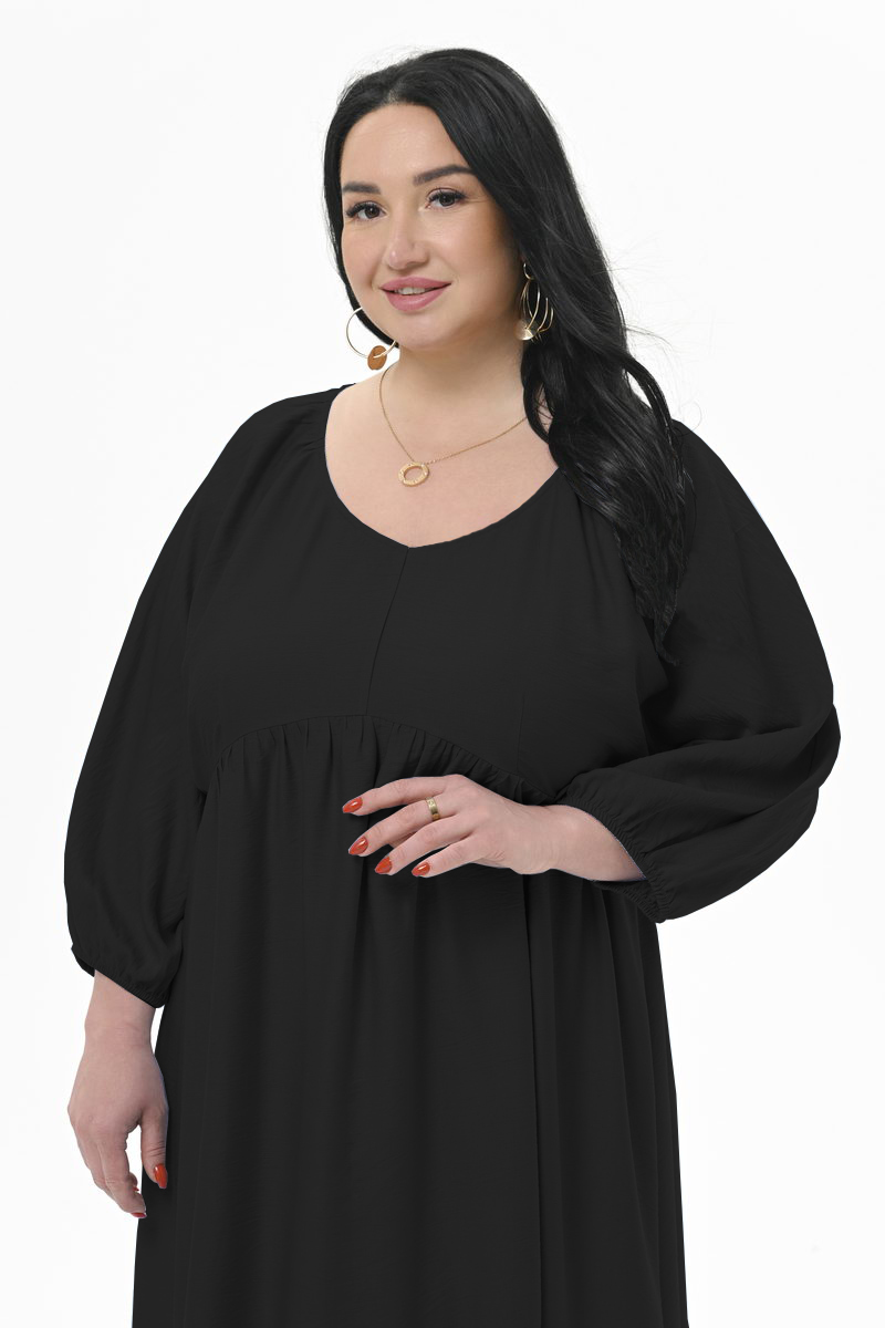 Роскошное, свободное, длинное платье из фактурной плательной вискозы. По переду V-вырез "мягкой" формы.На уровне линии груди плавный подрез,