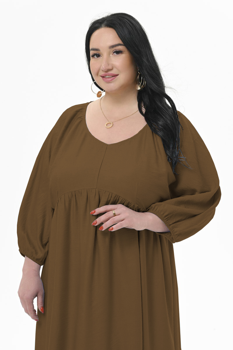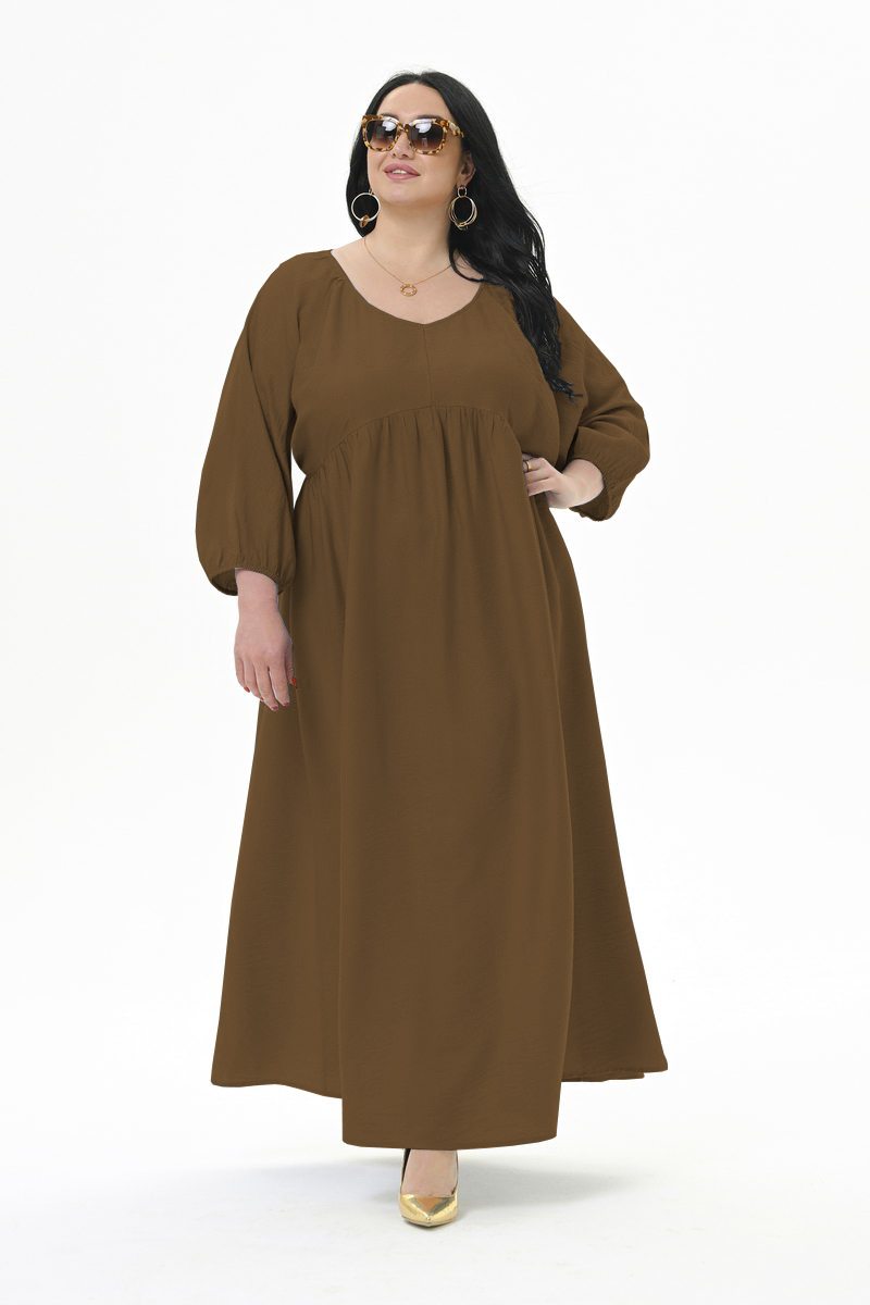 Роскошное, свободное, длинное платье из фактурной плательной вискозы. По переду V-вырез "мягкой" формы.На уровне линии груди плавный подрез,