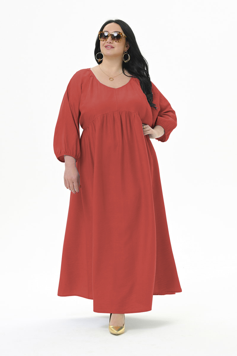 Роскошное, свободное, длинное платье из фактурной плательной вискозы. По переду V-вырез "мягкой" формы.На уровне линии груди плавный подрез,