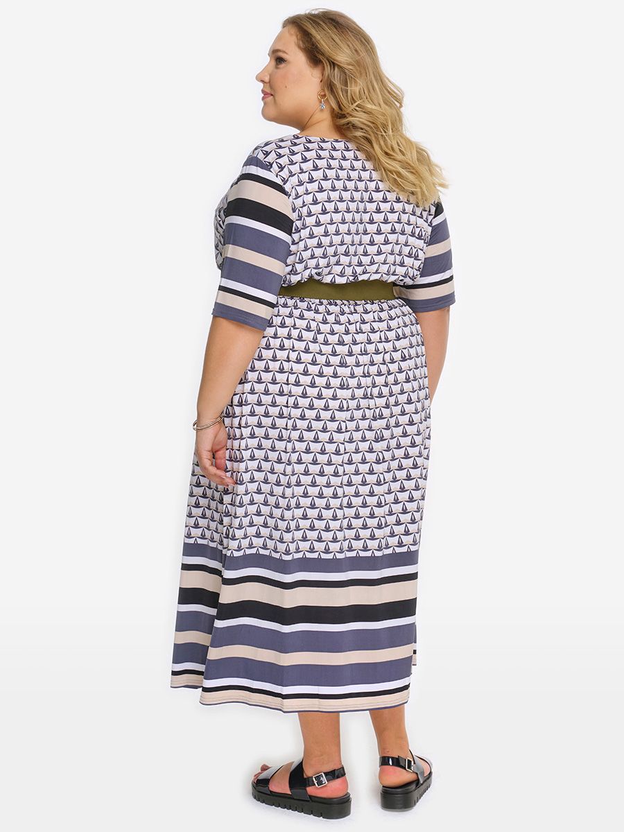 Платье свободное из "холодного масла", принт купон "кораблики"