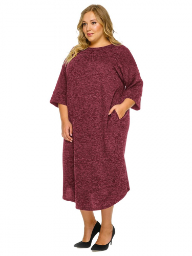 Удлиненное свободное платье с рукавом 3/4 и карманами из меланжевого джерси.