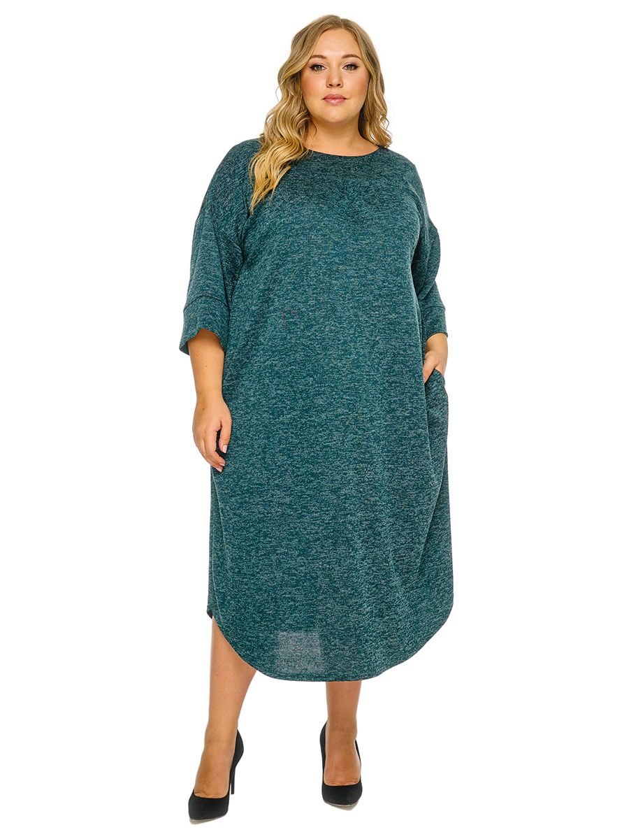 Удлиненное свободное платье с рукавом 3/4 и карманами из меланжевого джерси.