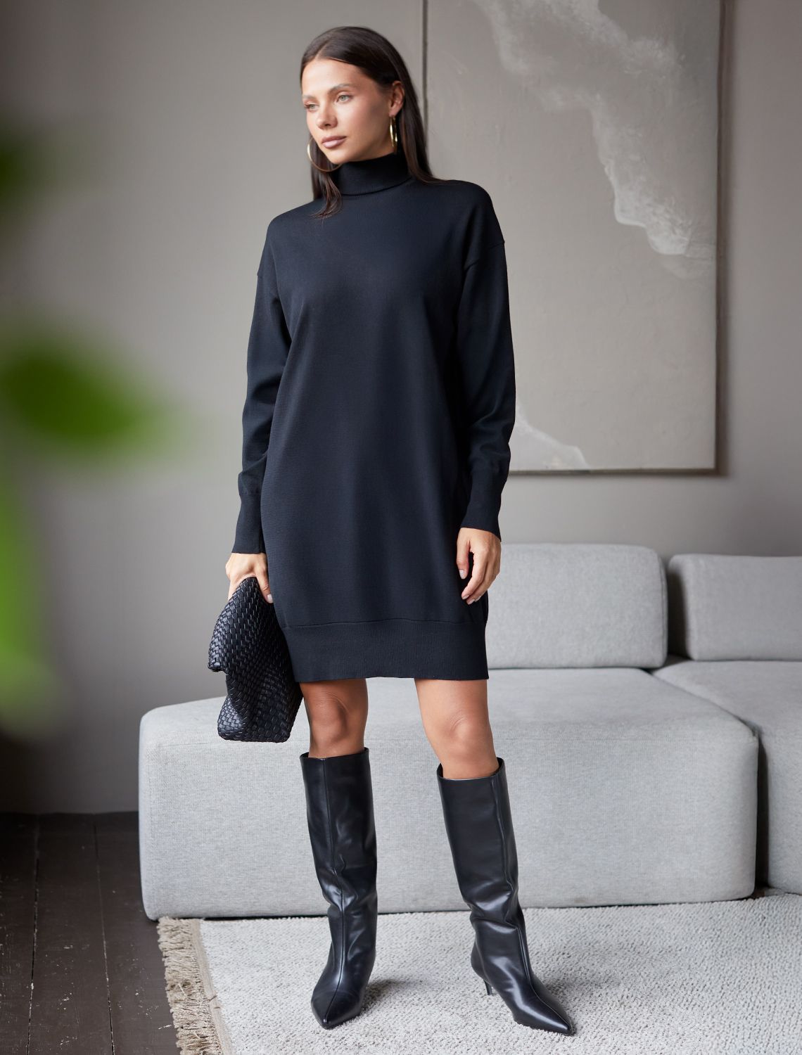 Ст.цена 2550р Платье тонкой вязки из хлопка с нейлоном D32.108 черный