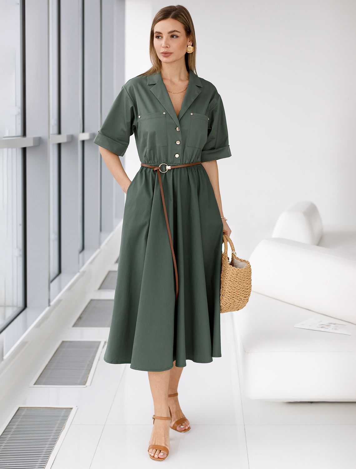 Платье в стиле сафари с отложным воротником D22.253 темно-оливковый