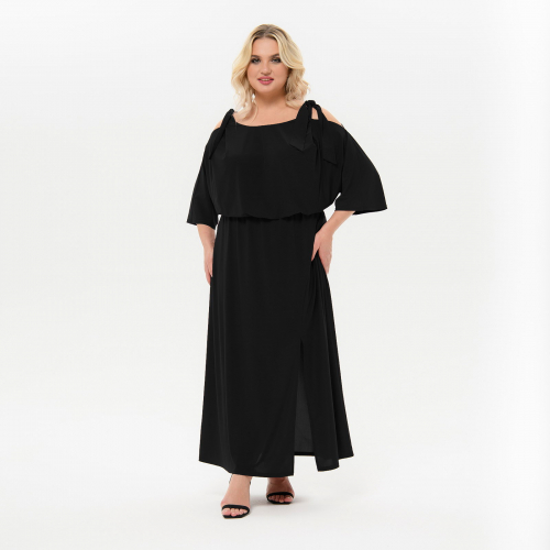 Вечернее платье необычного кроя с открытыми участками и завязывающимися бретелями на плечах.